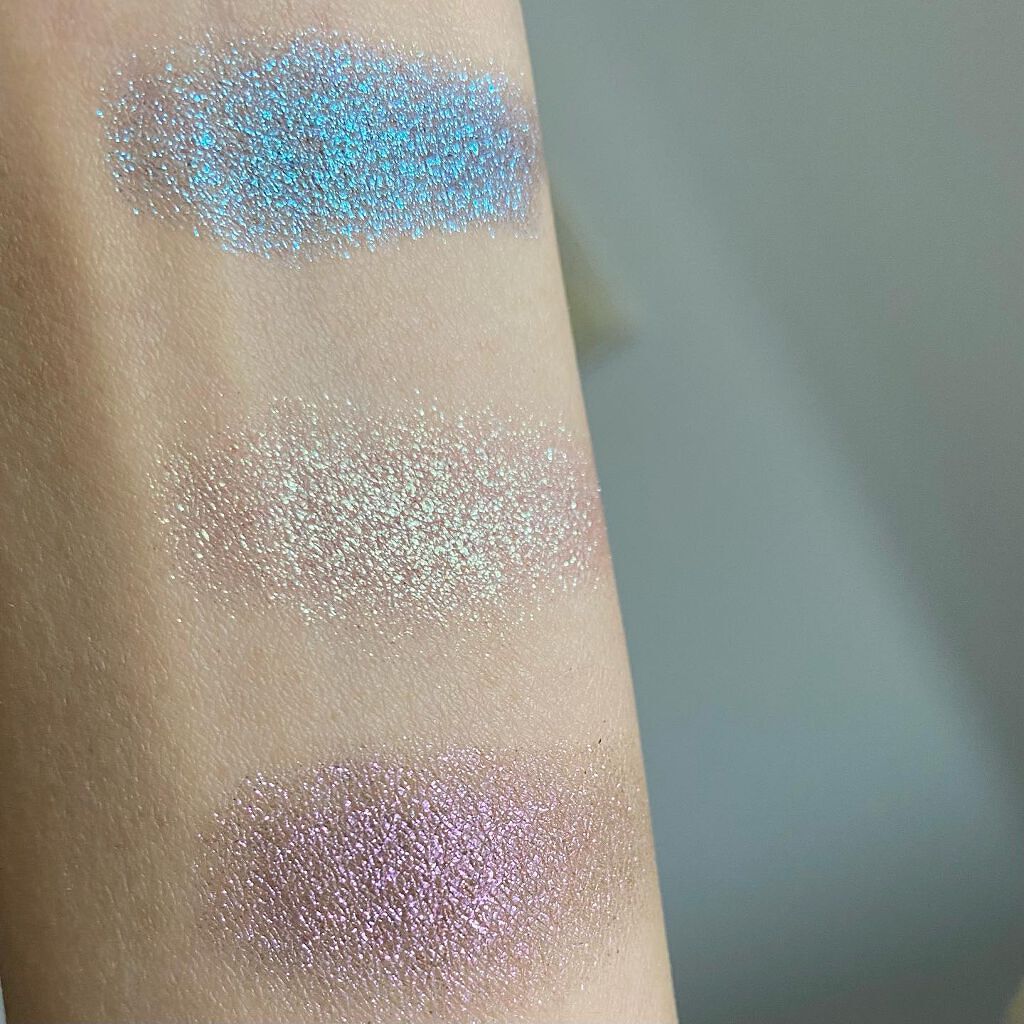 うん、やっぱ可愛い!♡ 神配色👏🏻 今の時期より夏に登場頻度増えそう🙌 ギラギラゴールドがタイプすぎる♡ 左:イエローゴールドシマー ⇒コッパーとゴールドのラメがたっぷり! 大粒ラメがギラギラ夏っぽい 右:シマリングライトピーチ ⇒発色は薄いもののベースや涙袋にだ活躍してくれる ピンクベージュ 左:オレンジ&ゴールデンシマー ⇒ありそうでなかったオレンジカラー オレンジからのゴールドの偏光がたまらない🍊 右:マットパープルレッド ⇒かなり濃いめのパープル!オレンジメイクにアクセントと深みを出してくれる