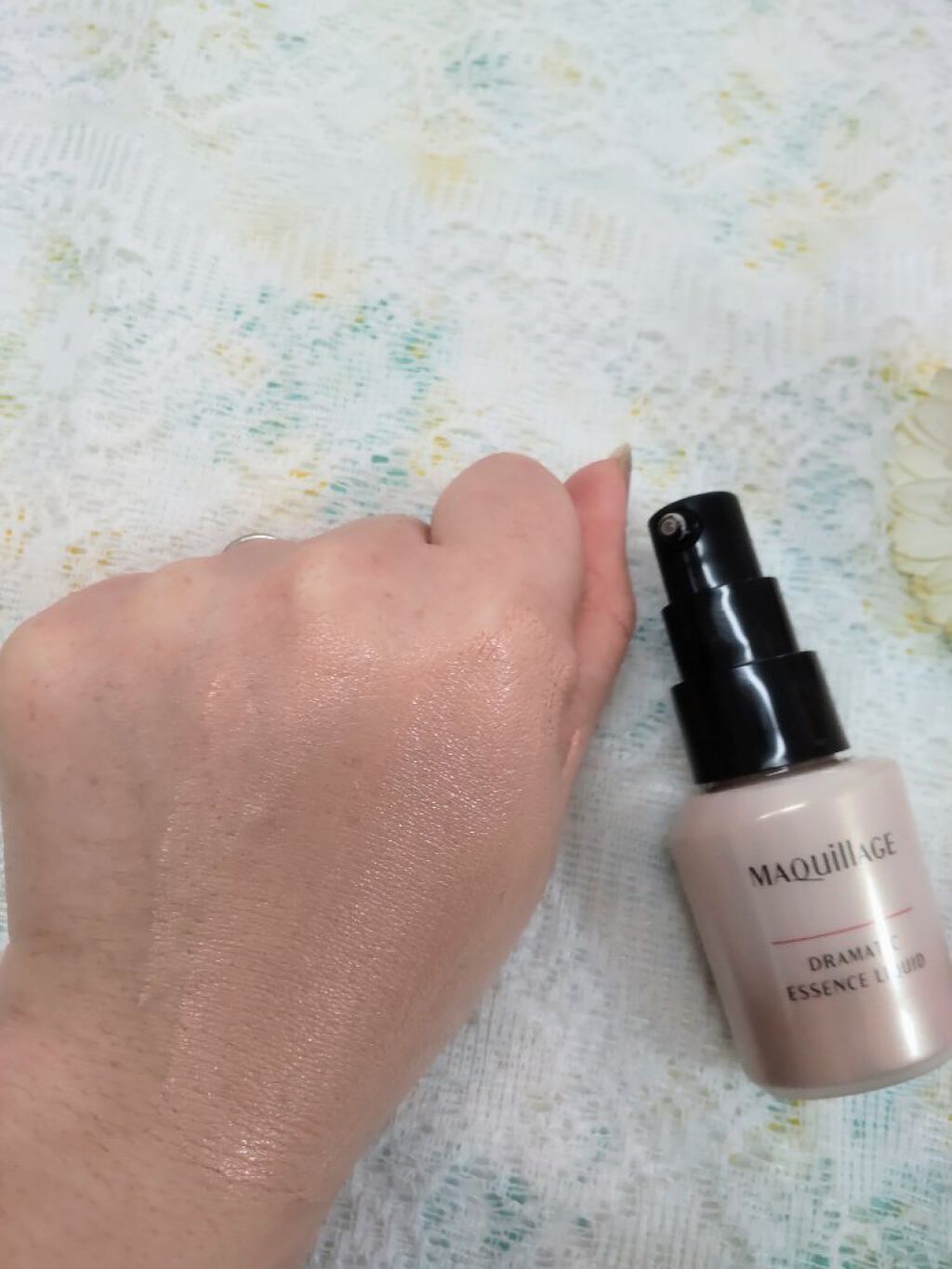 - カバーだけじゃない。極上つるん肌。毛穴レス美容液リキッドファンデ SPF50+・PA++++ ○乳化技術と美肌効果と浸透型美容液が三位一体となり、マキアージュ史上最高の美肌が叶うリキッドファンデーションです。 ① フルカバー×スキンケア乳化技術 └毛穴の凹凸にもピタッと密着。美容液を毛穴の奥まで届けながら、フルカバー ・保湿成分や油分のべたつきを感じさせず、なめらかな使用性を実現 ② ラスティング美肌効果 └毛穴・色ムラをフルカバーしながら、時間が経ってもくずれず、つけたての仕上がりが 長時間 持続 1 ・毛穴の凹凸を補正しながらつるんとした肌に見せる-毛穴レスつやパウダー ・カバーと透明感を同時に叶える-360 °美肌パウダー ・マスクをしていてもくずれにくい-ラスティングコート成分 ※1 13 時間化粧もち 毛穴の目立ちのなさ・つや・透明感・カバー力・化粧くずれのなさ データ取得済み 当社 調 べ。効果には個人差があります。 ③ 浸透型うるおい美容液 └長時間保湿持続。毛穴の奥までうるおいを届ける-グリシルグリシン ・グリセリン 整肌・保湿 ・たっぷりのうるおいで満たしつやのある肌に-ウォータリーキープエッセンス (ウォーターリリーエキス・スーパーヒアルロン酸(アセチルヒアルロン酸Na)・水溶性コラーゲン・グリセリン) 配合 ○1 回の使用量が分かりやすいディスペンサータイプです。 ○無香料、 ノンコメドジェニック・アレルギーテスト済 (全てのかたにニキビができない・アレルギーが起きないというわけではありません)