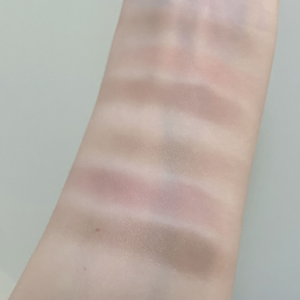 カラバリは2色展開、公式情報がないので不安ですがどうやら限定販売のようです! 01 プリュムフラワー ピンクベージュ系でまとめられたパレット 全体的にライトなピンクが多く、イエベ春の方向きに感じます 02 ボヌールマロン 赤みのあるカラーでまとめられたパレット 明るいカラーもありますがベージュや赤みブラウン等イエベ秋の方向きに感じます 表面のエンボス加工もかわいいのばっかりですね! ラメ強めが格子柄だからわかりやすいし、まとまりが良い⸜(๑⃙⃘'ᵕ'๑⃙⃘)⸝⋆* ちなみにこちらのパレットは8色も入っているのにかなりコンパクトで、1色の大きさが私の親指の爪よりちょい大きめという嬉しさ…! フタの水面のデザインは内側だけに施されているので、表面はツルッとしていますよ🌊 チップもふわふわで、多色パレット専用のサイズ感で長めなのが嬉しい♪ とにかく話題になっているこちら、可愛すぎるから在庫無くなるのお願い待って…🙏🏻💦