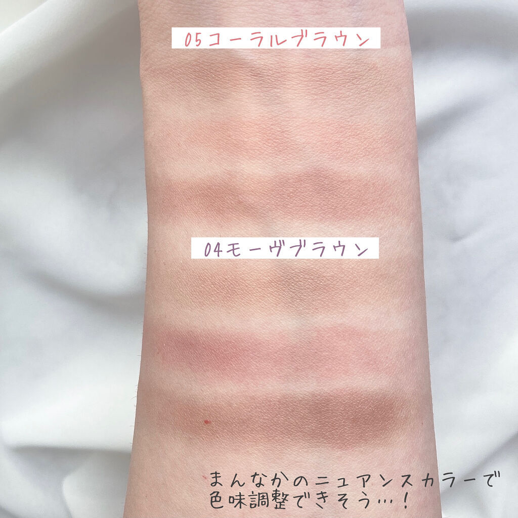 - <01 キャメル> リンゴ酸ジイソステアリル、トリエチルヘキサノイン、ミリスチン酸亜鉛、(HDI/トリメチロールヘキシルラクトン)クロスポリマー、ジメチコン、ペンチレングリコール、フェノキシエタノール、シリカ、メチルパラベン、トコフェロール、水、BG、ヒドロキシアパタイト、シクロペンタシロキサン、酸化亜鉛、トリメチルシロキシケイ酸、エタノール、ジラウロイルグルタミン酸リシンNa、アカヤジオウ根エキス、オタネニンジン根エキス、ポリクオタニウム-61、加水分解コラーゲン、システイン/オリゴメリックプロアントシアニジン、PVP、ヒドロキシエチルセルロース、アルギン酸Na、ユズ果実エキス、キトサン、セテアリルグルコシド、ポリ-γ-グルタミン酸Na、ヒアルロン酸Na、(+/-)タルク、マイカ、酸化鉄、酸化チタン <02 ナチュラルブラウン> リンゴ酸ジイソステアリル、トリエチルヘキサノイン、ミリスチン酸亜鉛、(HDI/トリメチロールヘキシルラクトン)クロスポリマー、ジメチコン、ペンチレングリコール、フェノキシエタノール、シリカ、メチルパラベン、トコフェロール、水、BG、ヒドロキシアパタイト、シクロペンタシロキサン、酸化亜鉛、トリメチルシロキシケイ酸、エタノール、ジラウロイルグルタミン酸リシンNa、アカヤジオウ根エキス、オタネニンジン根エキス、ポリクオタニウム-61、加水分解コラーゲン、システイン/オリゴメリックプロアントシアニジン、PVP、ヒドロキシエチルセルロース、アルギン酸Na、ユズ果実エキス、キトサン、セテアリルグルコシド、ポリ-γ-グルタミン酸Na、ヒアルロン酸Na、(+/-)タルク、マイカ、酸化鉄、酸化チタン <03 オリーブ> リンゴ酸ジイソステアリル、トリエチルヘキサノイン、ミリスチン酸亜鉛、(HDI/トリメチロールヘキシルラクトン)クロスポリマー、ジメチコン、ペンチレングリコール、フェノキシエタノール、シリカ、メチルパラベン、トコフェロール、水、BG、ヒドロキシアパタイト、シクロペンタシロキサン、酸化亜鉛、トリメチルシロキシケイ酸、エタノール、ジラウロイルグルタミン酸リシンNa、アカヤジオウ根エキス、オタネニンジン根エキス、ポリクオタニウム-61、加水分解コラーゲン、システイン/オリゴメリックプロアントシアニジン、PVP、ヒドロキシエチルセルロース、アルギン酸Na、ユズ果実エキス、キトサン、セテアリルグルコシド、ポリ-γ-グルタミン酸Na、ヒアルロン酸Na、(+/-)タルク、マイカ、酸化鉄、酸化チタン <04 モーヴブラウン> トリイソステアリン酸ポリグリセリル-2、トリエチルヘキサノイン、ミリスチン酸亜鉛、(HDI/トリメチロールヘキシルラクトン)クロスポリマー、ジメチコン、リンゴ酸ジイソステアリル、ペンチレングリコール、フェノキシエタノール、シリカ、メチルパラベン、トコフェロール、水、BG、ヒドロキシアパタイト、シクロペンタシロキサン、酸化亜鉛、トリメチルシロキシケイ酸、エタノール、ヒアルロン酸Na、ジラウロイルグルタミン酸リシンNa、アルギン酸Na、ヒドロキシエチルセルロース、アカヤジオウ根エキス、オタネニンジン根エキス、ポリグルタミン酸、キトサンサクシナミド、ポリクオタニウム-61、加水分解コラーゲン、ユズ果実エキス、マイカ、タルク、酸化鉄、グンジョウ、酸化チタン、合成フルオロフロゴパイト、黄4、赤226、水酸化Al、赤202 <05コーラルブラウン> トリイソステアリン酸ポリグリセリル-2、トリエチルヘキサノイン、ミリスチン酸亜鉛、(HDI/トリメチロールヘキシルラクトン)クロスポリマー、ジメチコン、リンゴ酸ジイソステアリル、ペンチレングリコール、フェノキシエタノール、シリカ、メチルパラベン、トコフェロール、水、BG、ヒドロキシアパタイト、シクロペンタシロキサン、酸化亜鉛、トリメチルシロキシケイ酸、エタノール、ヒアルロン酸Na、ジラウロイルグルタミン酸リシンNa、アルギン酸Na、ヒドロキシエチルセルロース、アカヤジオウ根エキス、オタネニンジン根エキス、ポリグルタミン酸、キトサンサクシナミド、ポリクオタニウム-61、加水分解コラーゲン、ユズ果実エキス、マイカ、タルク、酸化鉄、グンジョウ、酸化チタン、合成フルオロフロゴパイト、黄4、赤226、水酸化Al、赤202 <06 ピンクブラウン> トリイソステアリン酸ポリグリセリル-2、トリエチルヘキサノイン、ミリスチン酸亜鉛、(HDI/トリメチロールヘキシルラクトン)クロスポリマー、ジメチコン、リンゴ酸ジイソステアリル、ペンチレングリコール、フェノキシエタノール、シリカ、メチルパラベン、トコフェロール、水、BG、ヒドロキシアパタイト、シクロペンタシロキサン、酸化亜鉛、トリメチルシロキシケイ酸、エタノール、ヒアルロン酸Na、ジラウロイルグルタミン酸リシンNa、アルギン酸Na、ヒドロキシエチルセルロース、アカヤジオウ根エキス、オタネニンジン根エキス、ポリグルタミン酸、キトサンサクシナミド、ポリクオタニウム-61、加水分解コラーゲン、ユズ果実エキ