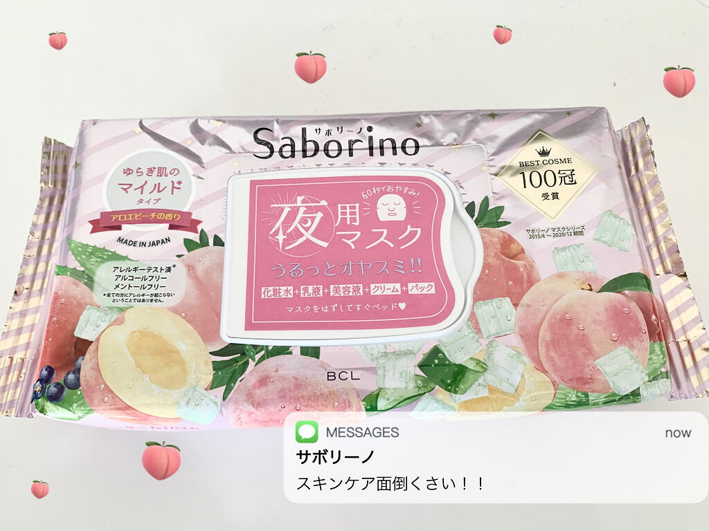 - これまでサボリーノを使えなかった方も使用できる、お肌にやさしいマイルド処方の夜用マスク。 ●ゆらぎ肌向けのマイルド処方 ・アルコールフリー/メントールフリー ・アレルギーテスト済*1 ●アロエ&桃の葉エキスのやさしいうるおい ●アロエピーチの香り ●60秒で「化粧水+乳液+美容液+クリーム+パック」が完了する時短マスク *1 すべての方にアレルギーが起こらないということではありません。