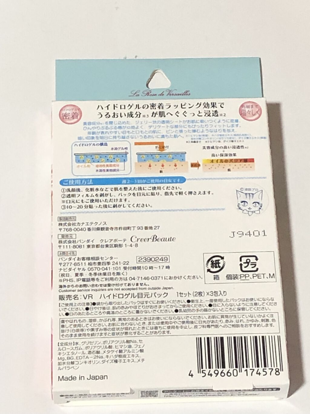 商品詳細情報クレアボーテ ベルサイユのばら ハイドロゲル目元パック