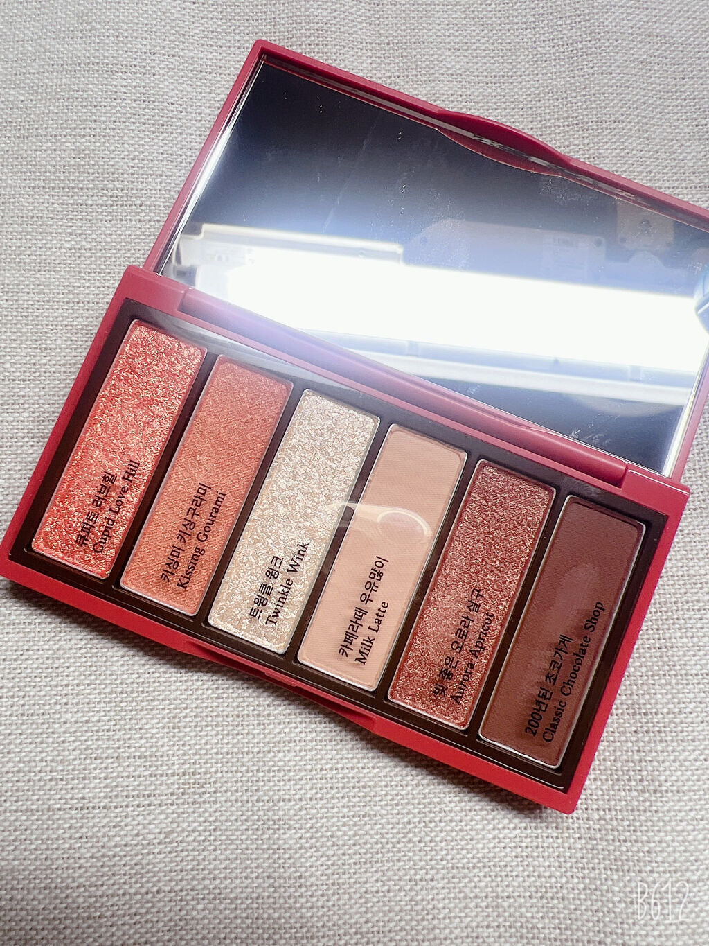 - スイートな発色、まぶたに美味しいご褒美を! ■まぶたに溶け込むスイートな発色 ひと塗りで肌にやわらかく密着し、鮮やかな発色が楽しめる6色のアイシャドウパレット。 毎日をよりスイートに彩るカラーで、甘酸っぱいストロベリーのように愛される目元や、深みのあるコーヒーのように大人っぽい目元まで楽しめます。持ち運びにも便利なコンパクトサイズ。 ■組み合わせが楽しい異なるテクスチャー 立体感をプラスするマット、しっとりとした艶めきを放つシマー、煌めくラメを自由に組み合わせ、毎日の気分に合わせた目元が楽しめます。ナチュラルに仕上げたいデイリーメイクにも、いつもより華やかに仕上げたいスペシャルメイクにも大活躍。どんな組み合わせも綺麗になじみ、理想のグラデーションが叶います。
