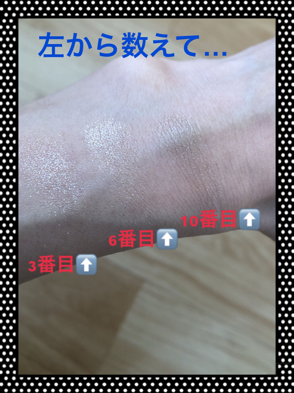 - <ロゼワイン> [#1, #6] タルク、リンゴ酸ジイソステアリル、ジメチコン、オクテニルコハク酸デンプンAl、窒化ホウ素、ステアリン酸亜鉛、ステアロイルオキシステアリン酸オクチルドデシル、エチルヘキシルグリセリン、ラウロイルリシン、トリエトキシカプリリルシラン、カプリリルグリコール、水、イソステアリン酸、酸化スズ、[+/-] マイカ、酸化チタン、酸化鉄、カルミン、黄4、赤226 [#2, #3, #7] タルク、マイカ、ポリプロピレン、トリエチルヘキサノイン、オクテニルコハク酸デンプンAl、テトラエチルヘキサン酸ペンタエリスリチル、エチルヘキシルグリセリン、トリエトキシカプリリルシラン、メチコン、ジメチコン、カプリリルグリコール、PCAジメチコン、水、水酸化Al、[+/-]酸化チタン、酸化鉄、赤226、黄4、グンジョウ [#4] ホウケイ酸(Ca/チタン)、ビスジグリセリルポリアシルアジペート-2、PET、ポリブチレンテレフタレート、タルク、ホウケイ酸(Ca/Al)、オクチルドデカノール、トリイソステアリン酸ポリグリセリル-2、(エチレン/VA)コポリマー、アクリレーツコポリマー、ポリプロピレン、エチルヘキシルグリセリン、カプリリルグリコール、ポリウレタン-11、シリカ、酸化スズ、酸化チタン、酸化鉄、Al、黄4、赤202 [#5] ホウケイ酸(Ca/チタン)、ホウケイ酸(Ca/Al)、マイカ、タルク、ジメチコン、リンゴ酸ジイソステアリル、ジフェニルシロキシフェニルトリメチコン、ジ安息香酸PG、テトライソステアリン酸ペンタエリスリチル、ミリスチン酸Mg、シリカ、クエン酸トリオクチルドデシル、ステアリン酸亜鉛、(ジメチコン/ビニルジメチコン)クロスポリマー、水添(スチレン/メチルスチレン/インデン)コポリマー、エチルヘキシルグリセリン、トリエトキシカプリリルシラン、カプリリルグリコール、テトラ(ジ-t-ブチルヒドロキシヒドロケイヒ酸)ペンタエリスリチル、酸化スズ、酸化チタン、酸化鉄 [#8] ホウケイ酸(Ca/チタン)、タルク、ジメチコン、ホウケイ酸(Ca/Al)、リンゴ酸ジイソステアリル、ジフェニルシロキシフェニルトリメチコン、ジ安息香酸PG、テトライソステアリン酸ペンタエリスリチル、ミリスチン酸Mg、シリカ、クエン酸トリオクチルドデシル、ステアリン酸亜鉛、(ジメチコン/ビニルジメチコン)クロスポリマー、水添(スチレン/メチルスチレン/インデン)コポリマー、エチルヘキシルグリセリン、トリエトキシカプリリルシラン、メチコン、カプリリルグリコール、テトラ(ジ-t-ブチルヒドロキシヒドロケイヒ酸)ペンタエリスリチル、酸化スズ、水酸化Al、マイカ、酸化チタン、酸化鉄、グンジョウ、カルミン、赤226、黄4 [#9] タルク、マイカ、シリカ、トリエチルヘキサノイン、ポリプロピレン、オクテニルコハク酸デンプンAl、テトラエチルヘキサン酸ペンタエリスリチル、エチルヘキシルグリセリン、トリエトキシカプリリルシラン、ジメチコン、カプリリルグリコール、PCAジメチコン、水、酸化鉄、グンジョウ、赤226 [#10] マイカ、タルク、ホウケイ酸(Ca/チタン)、ホウケイ酸(Ca/Al)、ジエチルヘキサン酸ネオペンチルグリコール、ステアリン酸亜鉛、ポリエチレン、フェニルトリメチコン、リンゴ酸ジイソステアリル、ヘキサ(ヒドロキシステアリン酸/ステアリン酸/ロジン酸)ジペンタエリスリチル、ネオペンタン酸イソステアリル、ナイロン-12、メタクリル酸メチルクロスポリマー、イソステアリン酸水添ヒマシ油、エチルヘキシルグリセリン、ステアロイルオキシステアリン酸オクチルドデシル、カプリリルグリコール、シリカ、酸化スズ、酸化チタン、酸化鉄 <ベイクハウス> [#1,#5,#9]ホウケイ酸(Ca/チタン)、ジフェニルシロキシフェニルトリメチコン、ラウロイルグルタミン酸ジ(オクチルドデシル/フィトステリル/ベヘニル)、ダイマージリノール酸水添ヒマシ油、ポリプロピレン、リンゴ酸ジイソステアリル、オクチルドデカノール、ホウケイ酸(Ca/Al)、エチルヘキシルグリセリン、カプリル酸グリセリル、ジエチルヘキサン酸ネオペンチルグリコール、トリイソステアリン酸ポリグリセリル-2、トリエチルヘキサノイン、ポリヒドロキシステアリン酸、ジステアルジモニウムヘクトライト、炭酸プロピレン、タルク、(HDI/トリメチロールヘキシルラクトン)クロスポリマー、シリカ、酸化スズ、[+/-]マイカ、酸化鉄、酸化チタン[#2, #3, #4, #6, #7, #8, #10]タルク、シリカ、合成フルオロフロゴパイト、リンゴ酸ジイソステアリル、メタクリル酸メチルクロスポリマー、ポリメタクリル酸メチル、トリエチルヘキサノイン、ステアリン酸亜鉛、ミリスチン酸Mg、フェニルトリメチコン、水添ポリイソブテン、ヘキサ(ヒドロキシステアリン酸/ステアリン酸/ロジン酸)ジペンタエリスリチル、ステアロイルオキシステアリン酸オクチルドデシル、ジメチコン、エチルヘキシルグリセリン、カプリル酸グリセリル、テトライソステアリン酸ペンタエリスリチル、ラウロイルリシン、(ジメチコン/ビニルジメチコン)クロスポリ