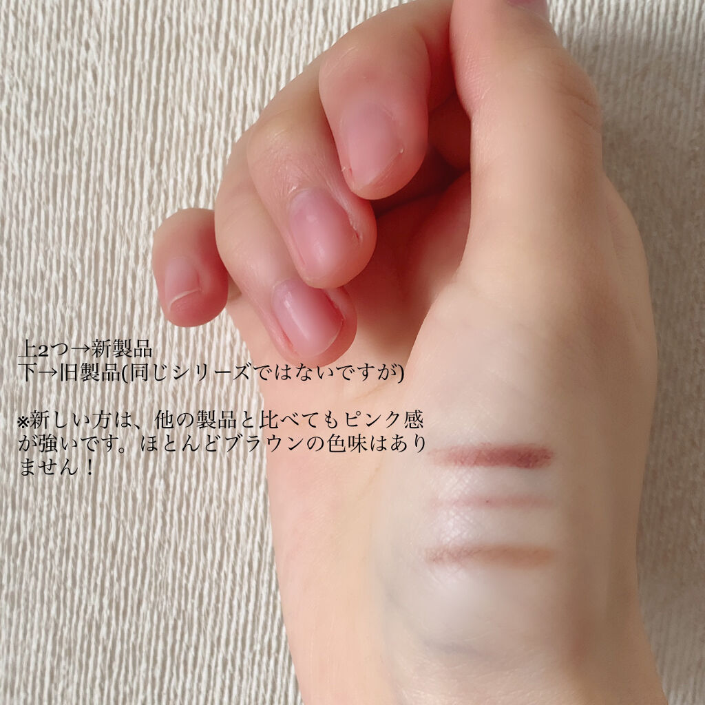 まさに粘膜色っ!といった感じで色味を足すというよりかは、元々の唇の色味を補正するといったニュアンスのあるティントです。 このシリーズの他の色味と比較すると、色持ちはあまり良くないです。 すこし粘度のあるテクスチャです。 甘いフルーツのような匂いがします。