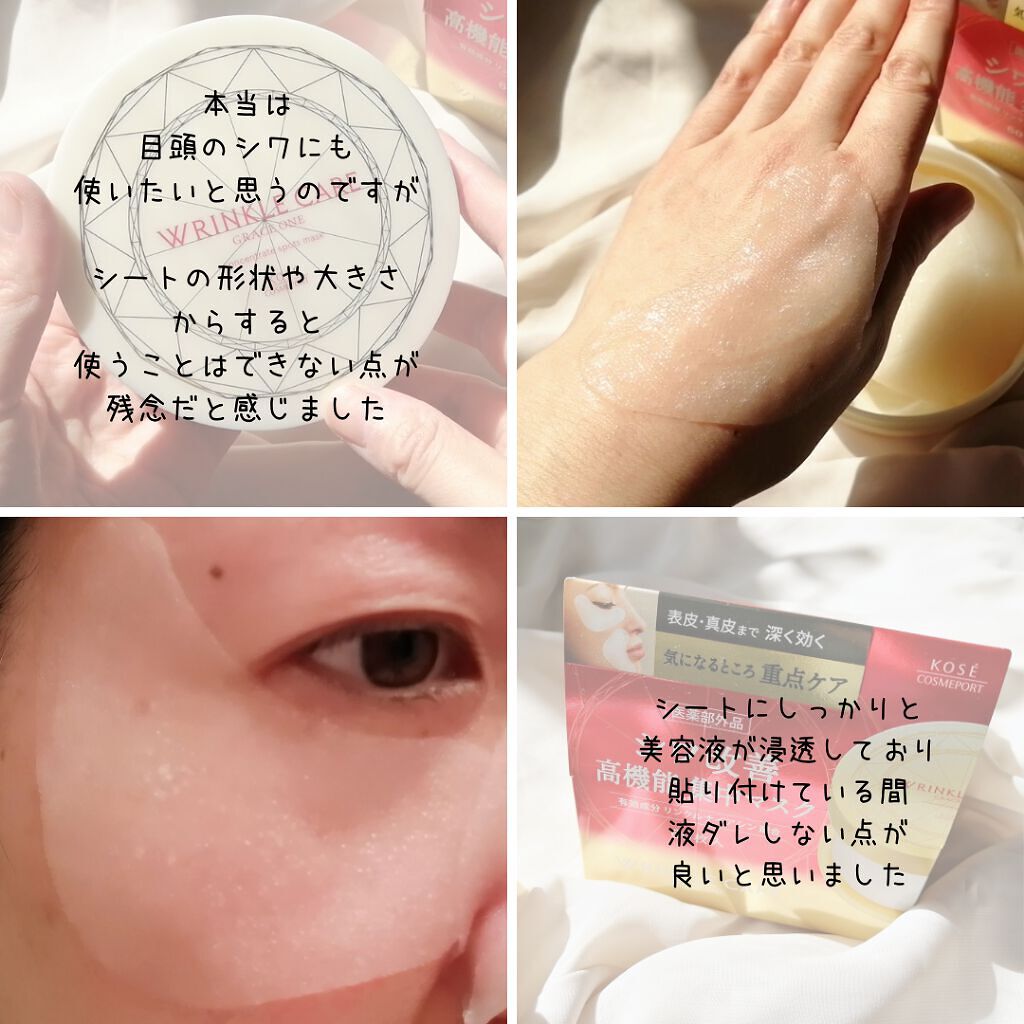 - シワを改善する部分用マスク。 表情が現れやすい目もと・口もとをはじめとするシワに、有効成分が表皮・真皮まで深く効果を発揮。内側からわきあがるような輝くツヤ肌へ。