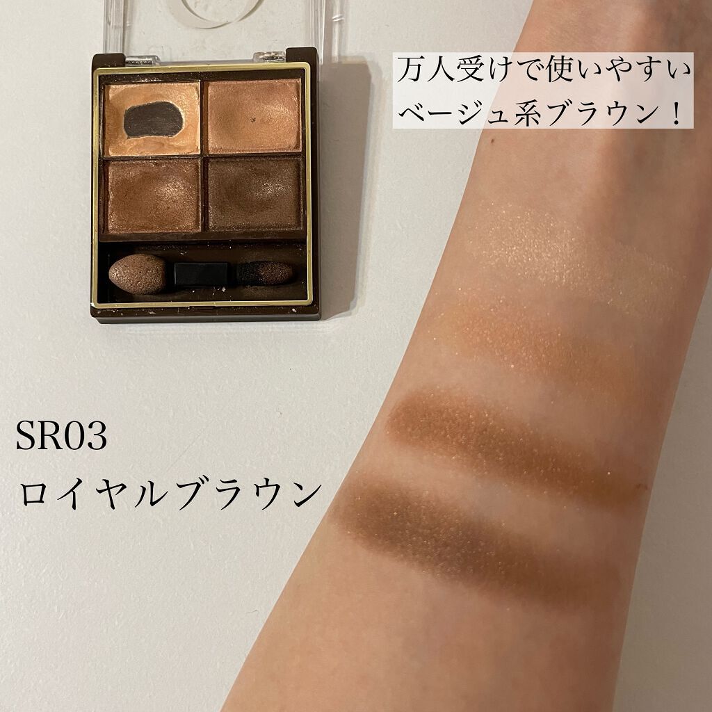 - 【ポイント】 1.失敗しらずのブラウンベースの4色パレット!簡単にグラデーションを実現。 2.しっとりリッチな質感!するする伸びて粉飛びもなく目元の乾燥も防ぎます。 3.上品な輝きの繊維パール+金パールを贅沢に配合。ギラつかない大人のツヤを演出。 <SR01'23・SR03'23・SR06'23・SR11'23(限定デザイン)> 実力派グラデアイシャドウからデジタルアートをあしらった限定デザイン登場。 しっとりリッチな密着感。肌のなじみの良い実力派グラデアイシャドウ。