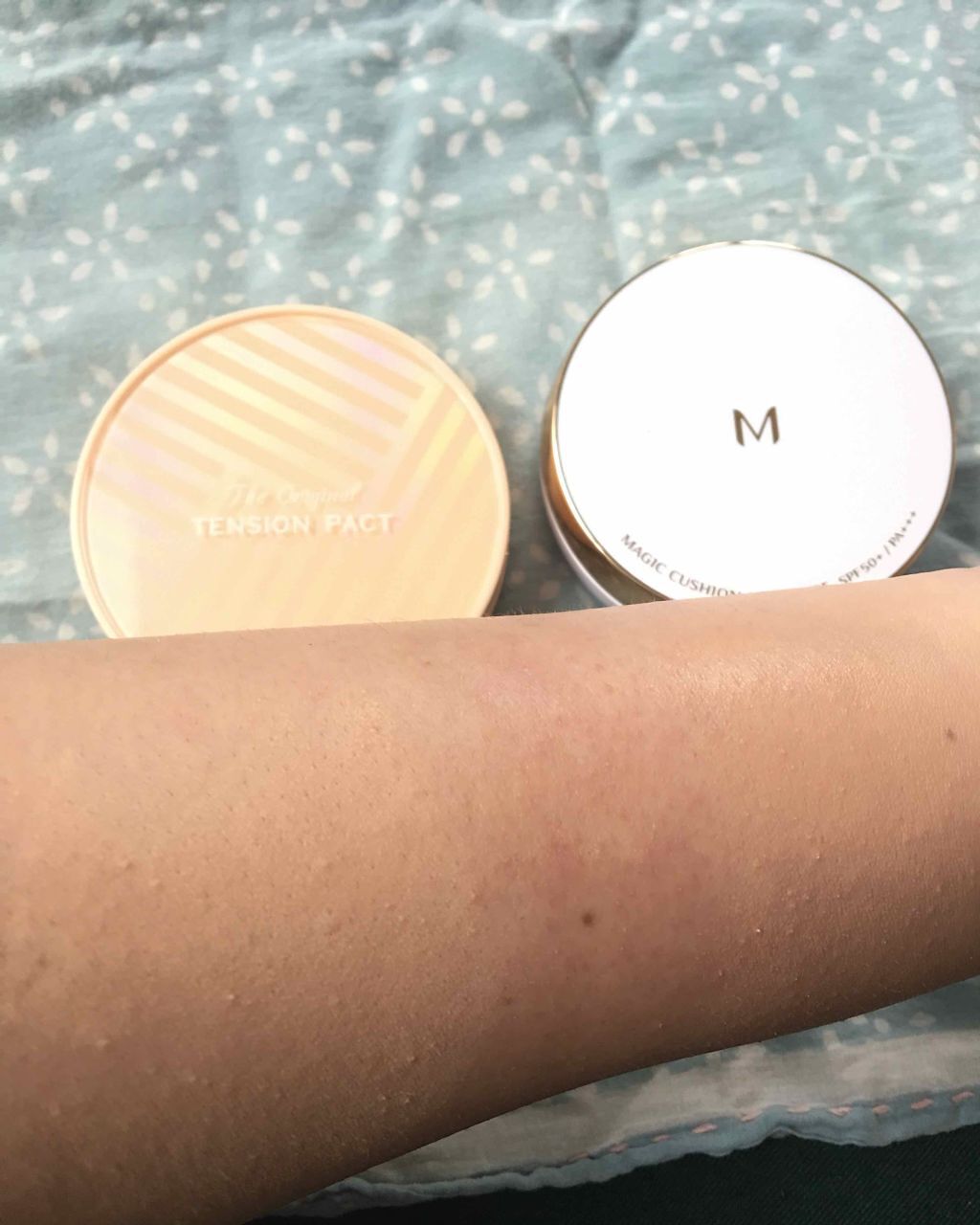 ミシャMクッションファンデーションモイスチャーみずみずしい水光ツヤ肌クッションファンデ!カバー力効果、ツヤ感効果のおかげでキメの整ったきれいなお肌にしてくれるよ🫶3種類の美容ウォーターで水分をチャージ!仕事柄、汗をかくのでみずみずしいクッショ...
