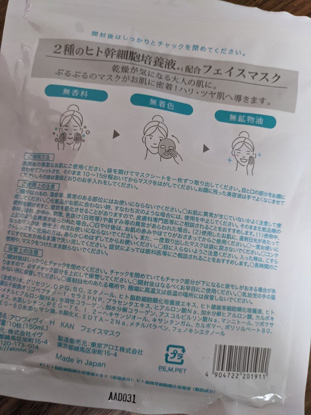 アロヴィヴィ ハトムギ美容マスク | 330円 |