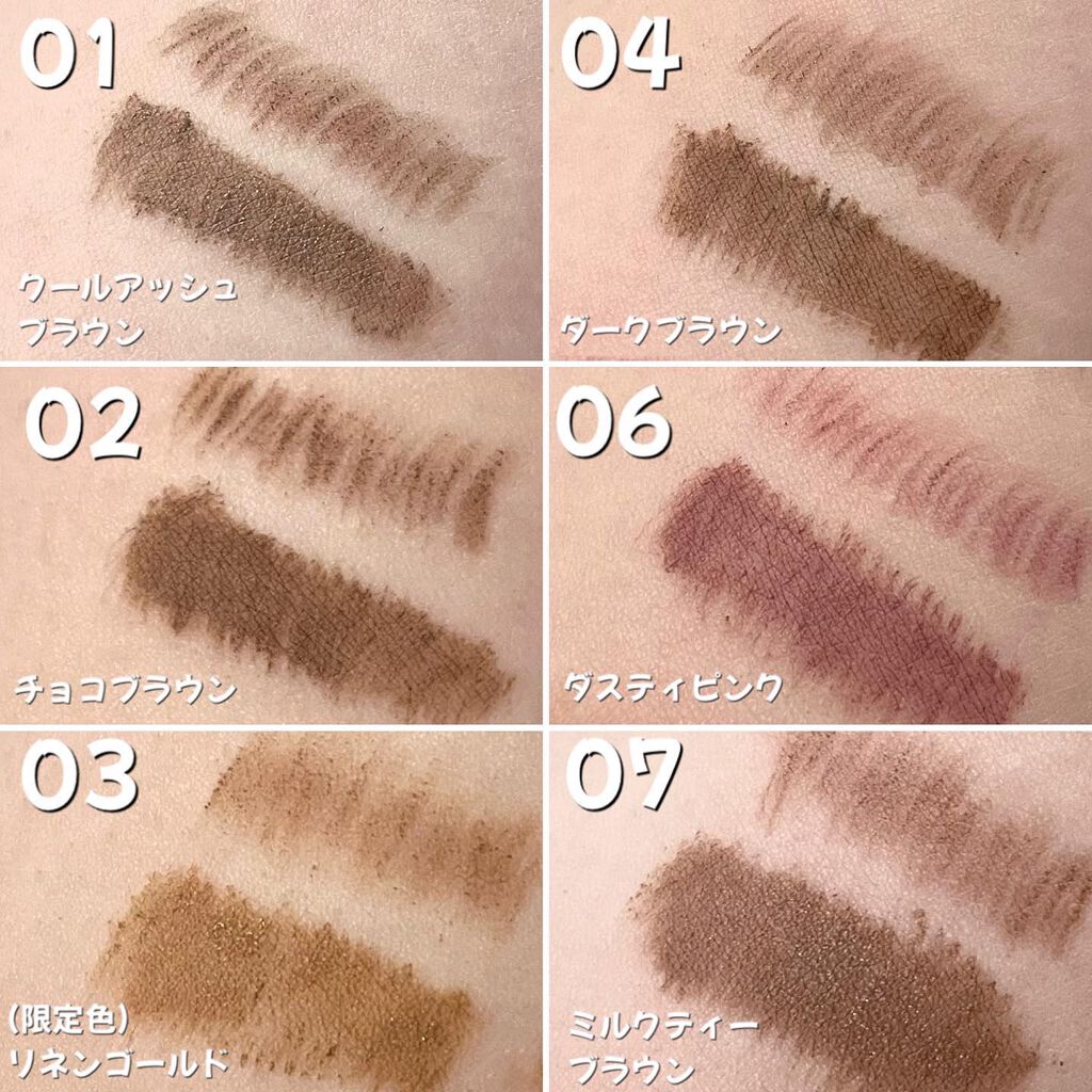 - #01 眉ペンシル:ポリエチレン 酸化鉄 マイカ 酸化チタン トリイソステアリン酸ポリグリセリル-2 水添ココグリセリル エチルヘキサン酸アルキル(C12-15) ステアリン酸亜鉛 ビスジグリセリルポリアシルアジペート-2 (C20-40)アルコール シリカ マイクロクリスタリンワックス トリステアリン酸ソルビタン カプリル酸グリセリル カプリリルグリコール 眉マスカラ:イソドデカン タルク トリメチルシロキシケイ酸 酸化鉄 ジステアルジモニウムヘクトライト ポリエチレン 酸化チタン (パルミチン酸/エチルヘキサン酸)デキストリン 水添ポリイソブテン 炭酸プロピレン ポリプロピルシルセスキオキサン (エチレン/プロピレン)コポリマー パルミチン酸デキストリン ジメチコン トリエトキシカプリリルシラン イソステアリン酸ソルビタン ポリメチルシルセスキオキサン フェノキシエタノール ジメチコンクロスポリマー エチルヘキシルグリセリン シリカ #02 眉ペンシル:酸化鉄 ポリエチレン トリイソステアリン酸ポリグリセリル-2 水添ココグリセリル エチルヘキサン酸アルキル(C12-15) マイカ ステアリン酸亜鉛 酸化チタン ビスジグリセリルポリアシルアジペート-2 (C20-40)アルコール シリカ マイクロクリスタリンワックス トリステアリン酸ソルビタン アルミナ カプリル酸グリセリル カプリリルグリコール グリセリン 眉マスカラ:イソドデカン タルク 酸化鉄 トリメチルシロキシケイ酸 ジステアルジモニウムヘクトライト ポリエチレン (パルミチン酸/エチルヘキサン酸)デキストリン 水添ポリイソブテン 酸化チタン 炭酸プロピレン ポリプロピルシルセスキオキサン (エチレン/プロピレン)コポリマー パルミチン酸デキストリン ジメチコン トリエトキシカプリリルシラン イソステアリン酸ソルビタン ポリメチルシルセスキオキサン フェノキシエタノール ジメチコンクロスポリマー エチルヘキシルグリセリン シリカ #03 眉ペンシル:ポリエチレン 酸化鉄 マイカ 酸化チタン トリイソステアリン酸ポリグリセリル-2 水添ココグリセリル エチルヘキサン酸アルキル(C12-15) ステアリン酸亜鉛 ビスジグリセリルポリアシルアジペート-2 (C20-40)アルコール シリカ マイクロクリスタリンワックス トリステアリン酸ソルビタン カプリル酸グリセリル カプリリルグリコール 眉マスカラ:イソドデカン タルク トリメチルシロキシケイ酸 酸化鉄 ジステアルジモニウムヘクトライト ポリエチレン (パルミチン酸/エチルヘキサン酸)デキストリン 水添ポリイソブテン 酸化チタン 炭酸プロピレン ポリプロピルシルセスキオキサン (エチレン/プロピレン)コポリマー パルミチン酸デキストリン ジメチコン トリエトキシカプリリルシラン イソステアリン酸ソルビタン ポリメチルシルセスキオキサン フェノキシエタノール ジメチコンクロスポリマー エチルヘキシルグリセリン シリカ #04 眉ペンシル:ポリエチレン 酸化鉄 マイカ トリイソステアリン酸ポリグリセリル-2 水添ココグリセリル エチルヘキサン酸アルキル(C12-15) ステアリン酸亜鉛 酸化チタン ビスジグリセリルポリアシルアジペート-2 (C20-40)アルコール シリカ マイクロクリスタリンワックス トリステアリン酸ソルビタン アルミナ カプリル酸グリセリル カプリリルグリコール グリセリン 眉マスカラ:イソドデカン タルク トリメチルシロキシケイ酸 酸化鉄 ジステアルジモニウムヘクトライト ポリエチレン (パルミチン酸/エチルヘキサン酸)デキストリン 水添ポリイソブテン 炭酸プロピレン ポリプロピルシルセスキオキサン (エチレン/プロピレン)コポリマー 酸化チタン パルミチン酸デキストリン ジメチコン トリエトキシカプリリルシラン イソステアリン酸ソルビタン ポリメチルシルセスキオキサン フェノキシエタノール ジメチコンクロスポリマー エチルヘキシルグリセリン シリカ #05 眉ペンシル:ポリエチレン トリイソステアリン酸ポリグリセリル-2 エチルヘキサン酸アルキル(C12-15) 水添ココグリセリル ステアリン酸亜鉛 ビスジグリセリルポリアシルアジペート-2(C20-40)アルコール シリカ トリステアリン酸ソルビタン マイクロクリスタリンワックス カプリル酸グリセリル カプリリルグリコール マイカ 酸化鉄 酸化チタン 眉マスカラ: イソドデカン タルク トリメチルシロキシケイ酸 ジステアルジモニウムヘクトライト ポリエチレン (パルミチン酸/エチルヘキサン酸)デキストリン 水添ポリイソブテン炭酸プロピレン ポリプロピルシルセスキオキサン (エチレン/プロピレン)コポリマー パルミチン酸デキストリン ジメチコン トリエトキシカプリリルシラン イソステアリン酸ソルビタン ポリメチルシルセスキオキサン フェノキシエタノール ジメチコンクロスポリマー エチルヘキシルグリセリン シリカ 酸化鉄 酸化チタン #06 眉ペンシル:ポリエチレン マイカ 酸化鉄 トリイソステアリン酸ポリグリセリル-2 水添ココグリセリル エチルヘキサン酸アルキル(C12-15) 酸化チタン ステアリン酸亜鉛 ビスジグリセ