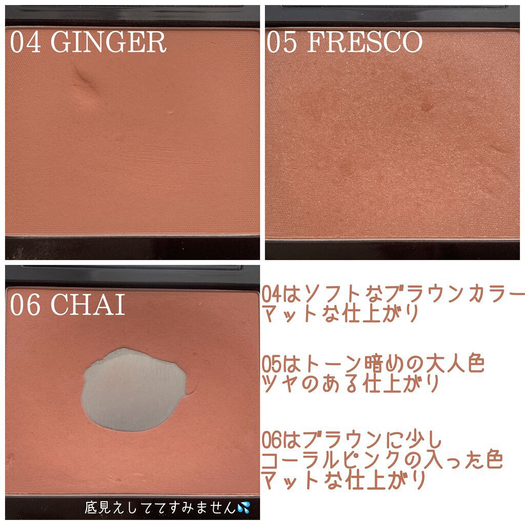 - 日本での販売終了 透明感あふれるフレッシュな発色としっとりとした質感が、ピュアさと女性らしさを備えた媚びない色気を演出します。 シアーにのばせば、イノセントに。大胆に重ねてスタイリッシュに。その日の気分やファッション、一緒に過ごす人など、様々なシーンに合わせて自在に雰囲気を操る、甘さと色香を両立したチーク ・FRESH COLOUR 独自にブレンドされた3種の微細なパウダー*1がふんわりと頬を包み込み、純度の高いピュアな発色を実現しました。かげりのないクリアな色味が長時間*2続き、肌本来の美しさをひきたてながらイノセントでフレッシュな印象を与えます。 ・WEIGHTLESS, SILKY SMOOTH TEXTURE 保湿力と密着力に優れたパウダー*3が、潤いに満ちた官能的な使用感を叶えました。 パウダーと思えないほどのしっとりなめらかな質感でありながら、つけていることを忘れるほど軽いつけ心地。 溶けるように肌になじみ、内側からじんわりにじむような質感で洗練された色香を演出します。 ・BLENDABLE & BUILDABLE SHEER COVERAGE コーティングされた微細なピグメントが肌の上をすべるように広がり、限りなくシアーな色彩を実現。 まるで頬の赤みをよそおうような自然な発色を叶えます。 透明感はそのままに重ねることで色味の濃淡をお好みに合わせて簡単に調整できます。 *1 ハイテクバインダーブレンドがクリーミーに、触り心地をなめらかにし、肌の密着度を高めます。 *2 10時間の仕上り持続データ取得済み。(当社調べ。効果には個人差があります。) *3 ココナッツオイルでコーティングされたラウロイルリシンがしっとりとなめらかな、官能的なつけ心地を叶えます。ヒアルロン酸配合で保湿力にたけており、ハリ感のある活きいきとした印象を与えます。