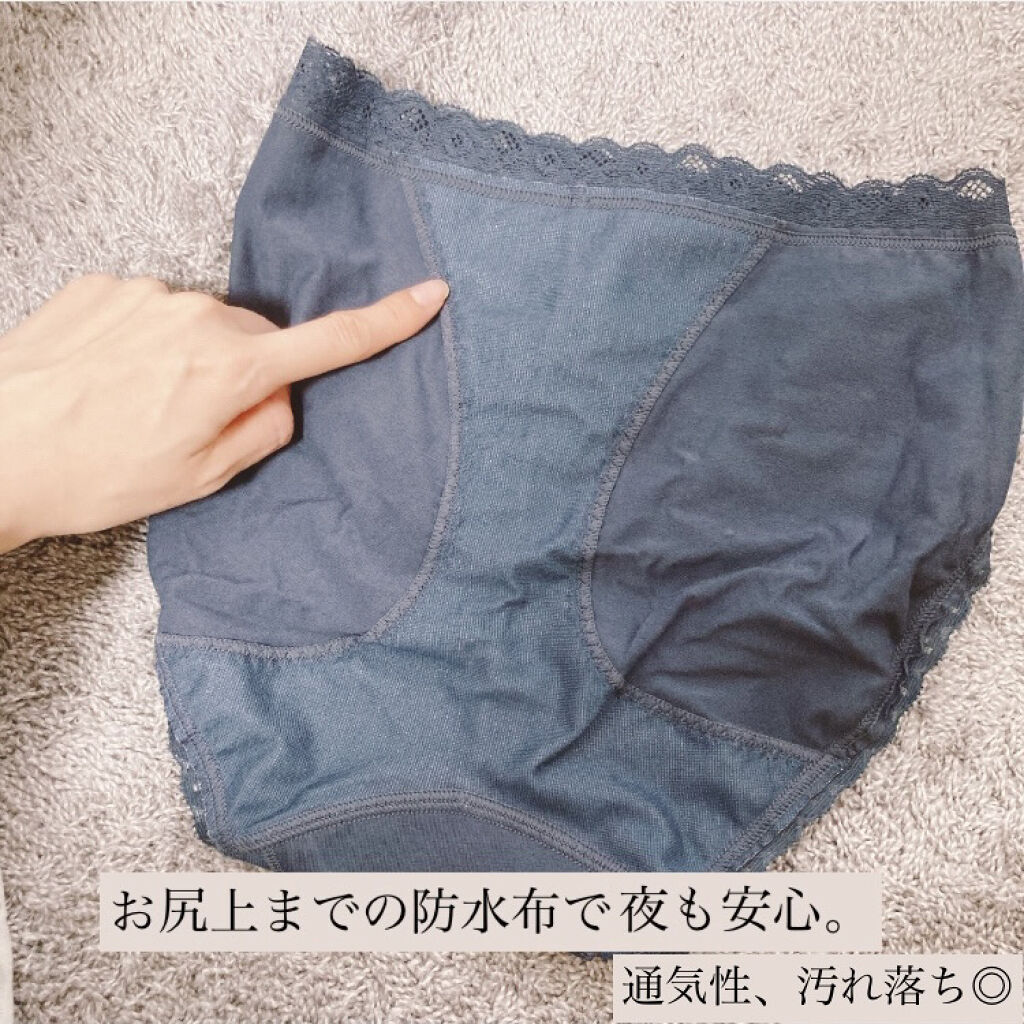 - ロリエ独自!ズレ防止設計で超安心フィット。 股部分にナプキンのズレやヨレを防ぐパッドを使用。 どんなに動いてもフィットし、モレずに安心です。 超ロングな防水布が多い夜も後ろモレ徹底ガード!肌にやさしいコットンを使用。 一晩中ムレにくく快適。 ウエスト、脚まわりは、ストレッチレースでしめつけない。 モレが気になる多い夜に。 ブルーグレー。 深め丈。 超ロング防水布付き。 羽がしまえる二重クロッチ構造。
