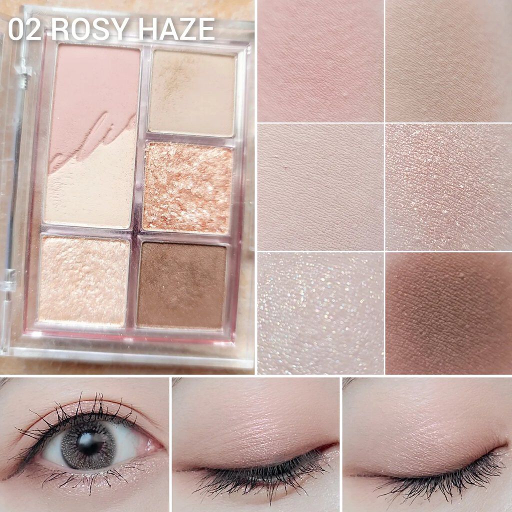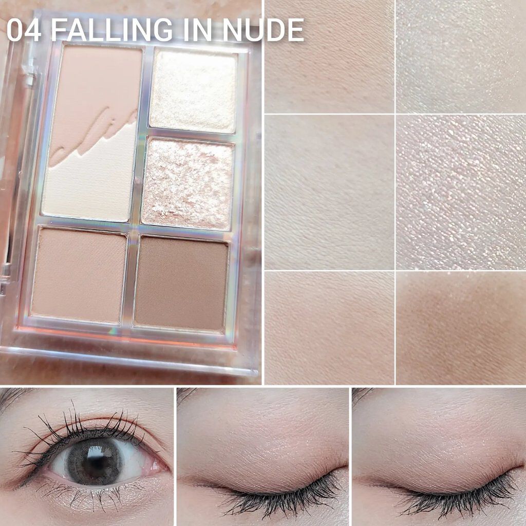 - 同系色陰影カラーと上品でクリアなグリッターの組み合わせの必要なカラーだけ詰め込んだミニアイパレット!