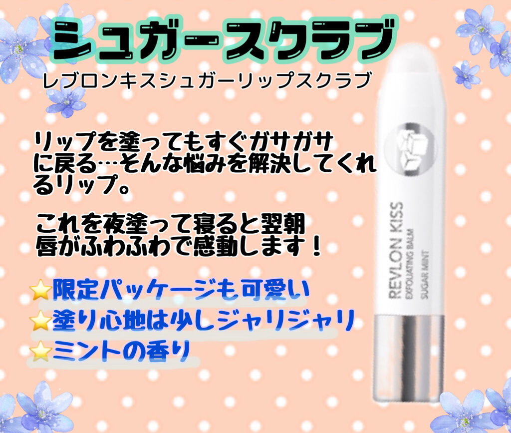 | 口紅・グロス・リップライナーランキング第14位 | スクラブが入っていて、ほんのり爽やかなシュガーミントの甘い香りくちびるの角質ケアができる リップバームです。 | 詳細を見る | |
