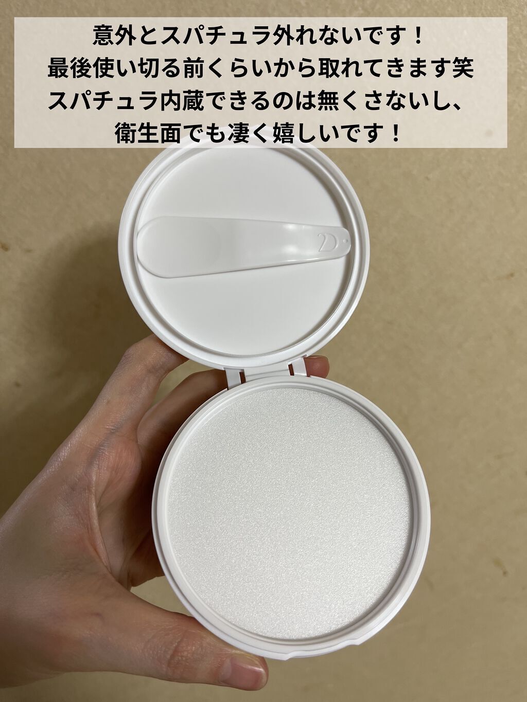 ワンタッチで開くタイプで、毎日使うのにストレスなく使えて良かったです。 スパチュラは外に立てかけられるのが画期的で良かったです! 黒い炭?のツブツブが入っていて触った感じはザラザラしています。 ザラザラが慣れるまで少し痛くてこれで肌が荒れないかちょっと不安でしたが、大丈夫でした。 肌が強い方は、しっかり汚れが取れてスッキリするかもしれないです。 バームらしく、クルクルするととろけてオイル状になります。 最後お湯と混ぜて乳化させるとさらに汚れが取れてスッキリした洗い上がりになりました。