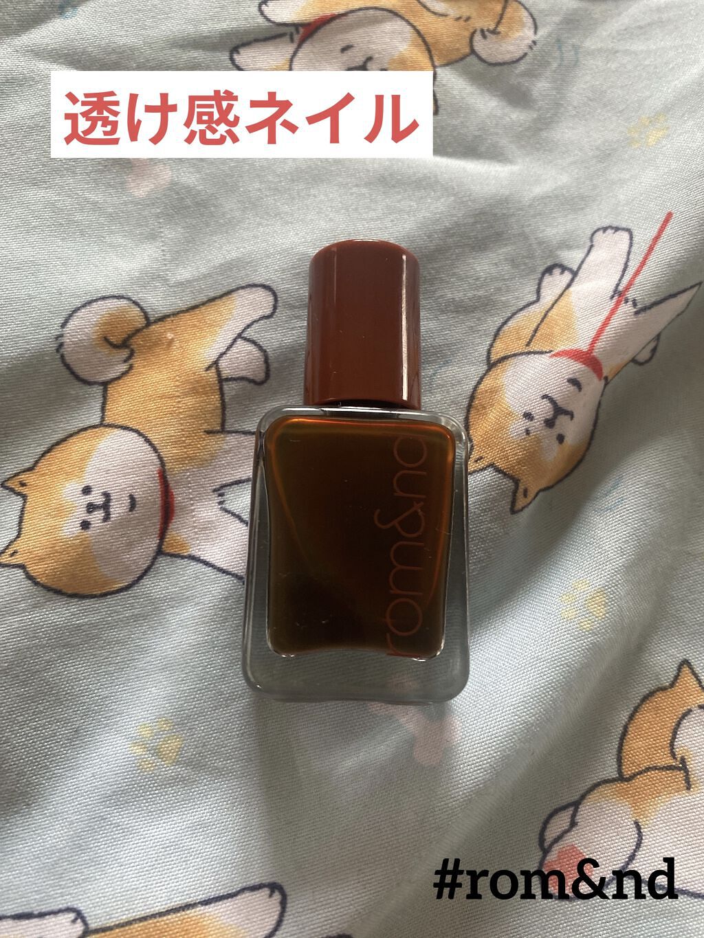 - 指先に玉石のような、ならかな光沢をとどめる。塗った瞬間から綺麗なツヤと光沢を維持し、重ねて塗っても透き通ったカラー感を鮮やかにとどめる、素早い乾燥力のナチュラルカラーネイル。「ロムアンド」の次世代型ネイルです。
