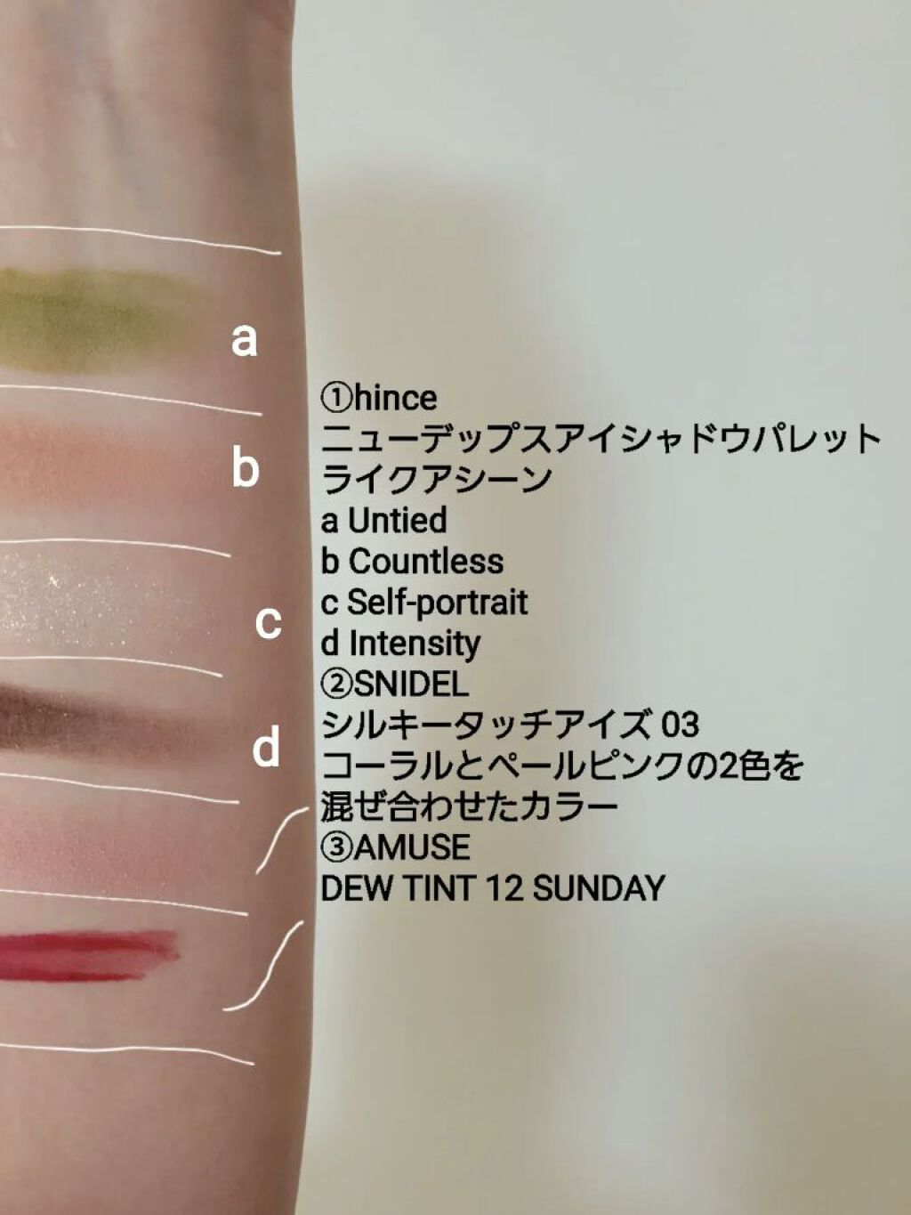 アイブロウは #WHOMEE の#レディモーヴ を。 #celvoke の #ヴォランタリーアイズ Sのアンバーを上下の瞼に指で馴染ませる。 #hince の #ニューアンビエンスカラーアイライナーの#インフューズドを上瞼の黒目上辺りから目尻に掛けて目の際にアイラインを✨ #SNIDELBEAUTY の #フェイススタイリストのa スパークリングゴールドを上瞼の黒目上に。 #SNIDELBEAUTY の #フェイススタイリストのb フロステッドシルバーを下瞼の黒目下に。 #toonecosmetics の #ロングラッシュマスカラ 05を上睫毛だけに付ける。 チークは ⑤③と同じパレットの血色感チークを。 リップは #ヒンス の #ムードインハンサーマットのアドレスを塗る。 #shirocosmetics の #エッセンスリップオイルカラー 0A04をチョチョンと重ねる💋✨ ベージュのアイライナーは抜け感というのかな✨ ゴールドとシルバーのラメは万能です👏