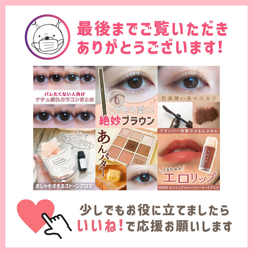 このリップ、すごい話題ですよね! うるうるちゅるんちゅるんでとっても可愛い🥺 *01ココヌード ヌードベージュ。発色は淡め。 ミルクティーみたいなピンクベージュに。 *03ソルベバーム 王道ピンク。赤みすぎず黄色みすぎず誰にでも合いそうな色。 *05ヌガーサンド 見た目ブラウンだけど唇に塗ると自分の唇の色に近く、少し血色を足して補正してくれるような色味。 *06カヤフィグ 05に少しローズを足したような色。可愛くなりすぎない落ち着いたローズピンク。 *07モーブホイップ 結構青み強く見えるけど唇に塗るとほぼ青みを感じないピンク。イエベさんが青みよりのメイクにしたい時に使いやすそう。普通に使いやすい。 全体的に溶けるような使用感。つやぷるリップより柔らかく、減りが結構早いです。 あと、少しだけ甘い匂いが付いています。 とっても可愛いですが、唯一の欠点はマスクにはべっとり付いてしまうのでマスク派の人は注意です!