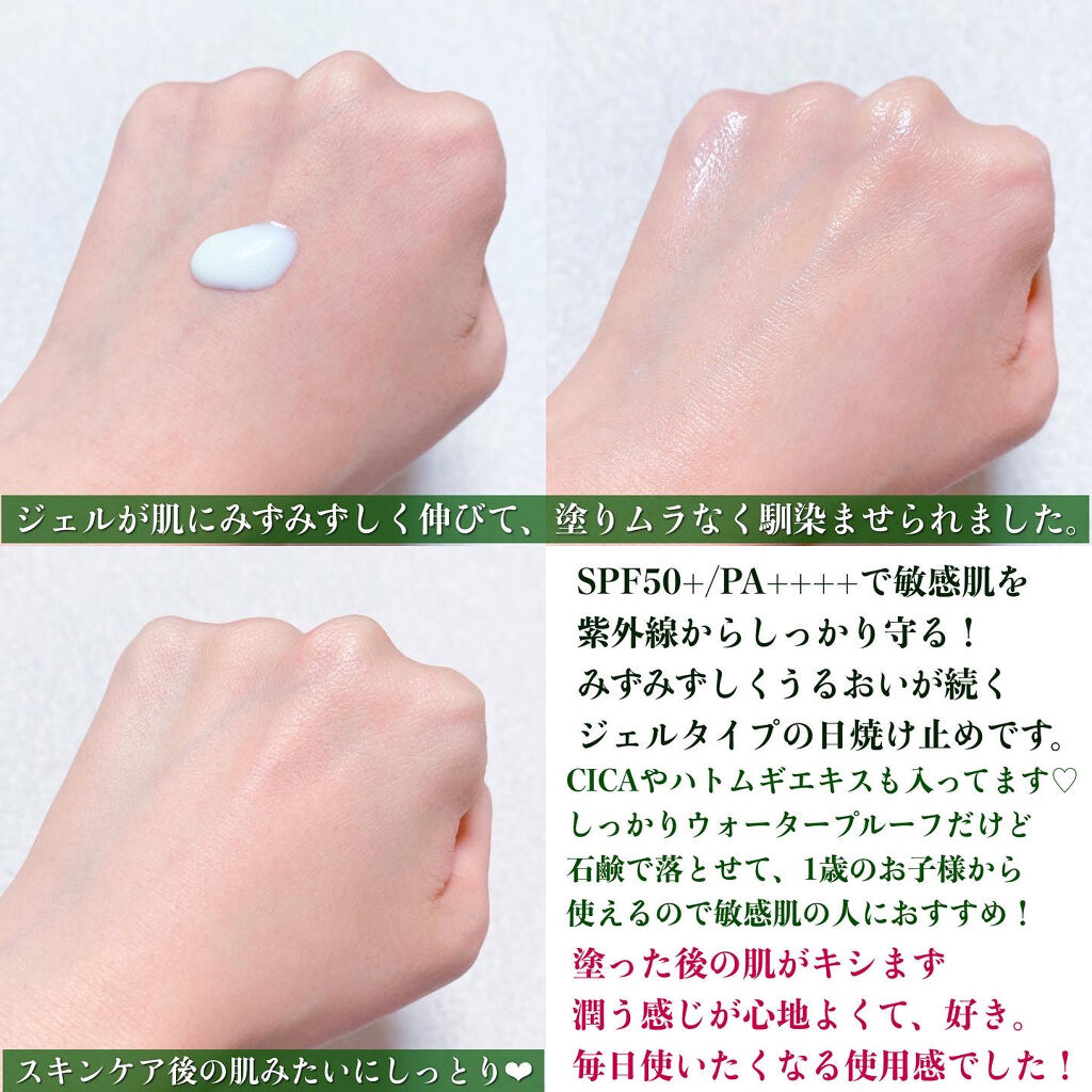 - デリケートなお肌を紫外線からしっかり守る。 みずみずしくうるおい続くジェルタイプ。 お肌にやさしい日やけ止め。5つの無添加(香料・着色料・鉱物油・パラベン・エタノール)。 うるおい成分、ハトムギエキス、モリンガエキス、オウゴンエキス、アロエエキス、緑茶エキス配合。 外的刺激(紫外線・乾燥・花粉・PM2.5)をプロテクト。