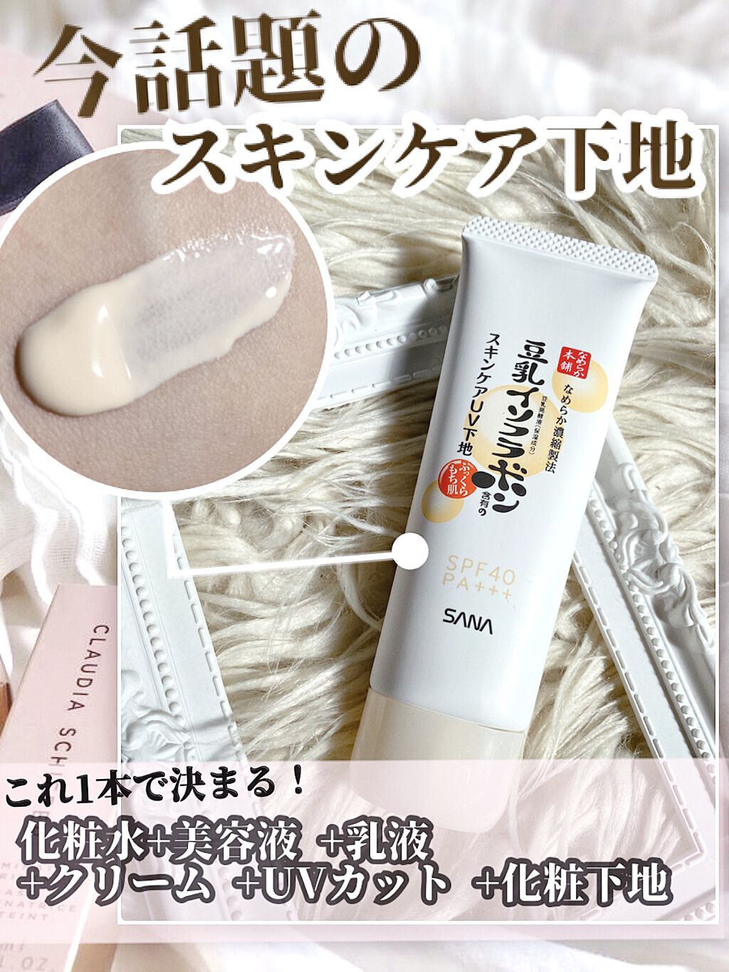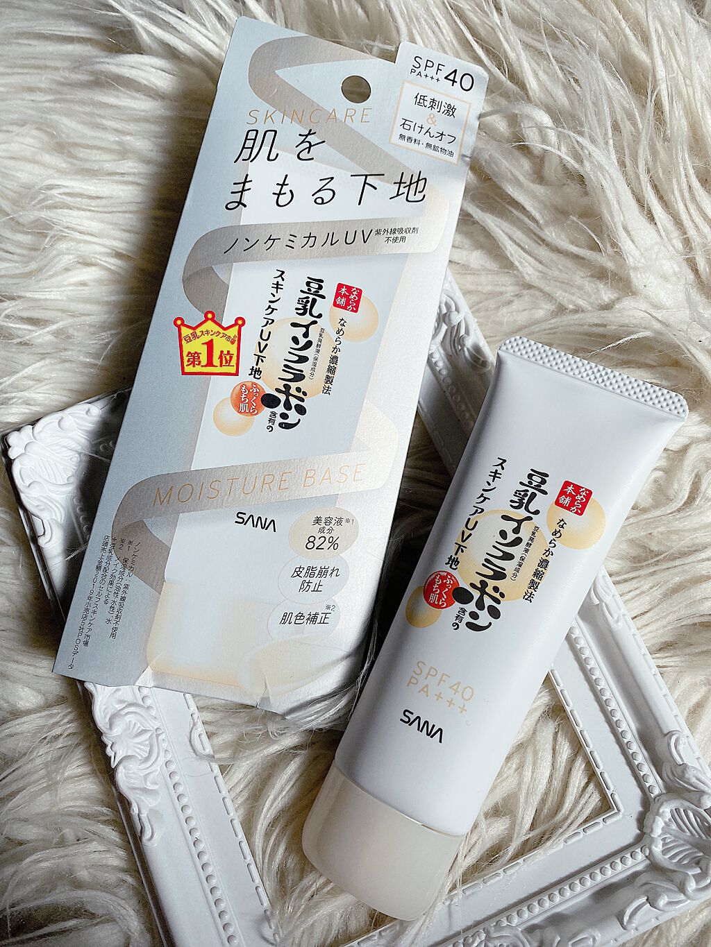 - <スキンケアUV下地> 豆乳のスキンケアUV下地。低刺激&ノンケミカル(紫外線吸収剤不使用)。肌色補正(メイク効果による)&皮脂崩れ防止。化粧水・美容液・乳液・クリーム・UVカット・化粧下地の1本6役。SPF40・PA+++。