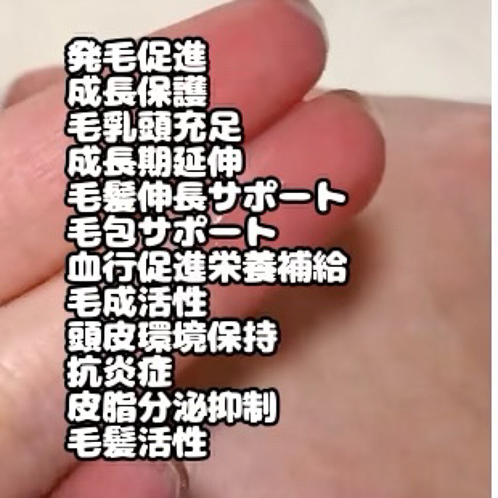 これだけの効果が期待できるというのは今までに私は見たことがなく、とてもいいなと思います🎶 シンプルなデザインがとても好みです💕 蓋を開けるとプッシュ式になっているのですがこのまま頭皮に直接塗布できるのが嬉しいポイントです。 無色透明でサラッとしたテクスチャかなと思います😊 スプレーの勢いが結構強いので狙ったところにしっかり塗布することができます✨ 使用後はベタついたりヌルついたりということもなく、アッサリとした使い心地かなと思います😍