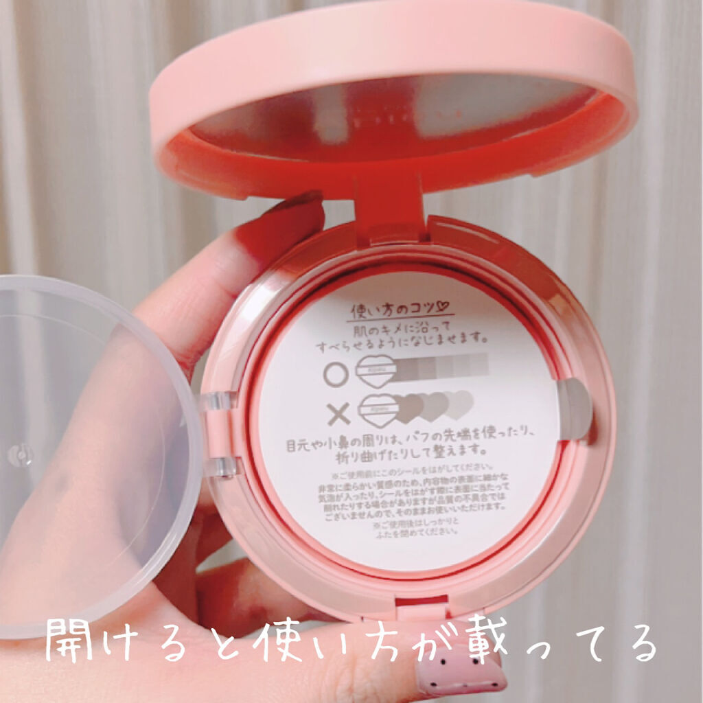 パフ可愛すぎるでしょ! サラサラ。スフレー! あれ?白い?って最初ドキっとしたけど、スーッと馴染む。 ちょっと日焼け止め効果あり。日常使いしやすい! 顔に使ってみたけど乾燥しないし、白浮きもなし! 毛穴ふわっとなる。 入院中のナチュラルメイクにピッタリや!