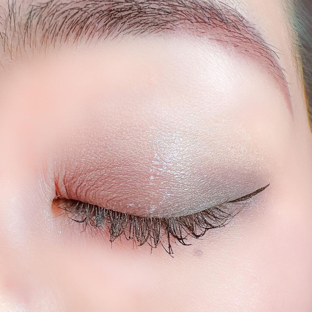 ピンクにグレージュも良いですね👌💗 今日は可愛らしい感じにしてみました💕 上下瞼黒目〜目頭側にラメを塗ってキラキラさせております🤩 目尻はマットのピンクを濃いめに重ねて💗 グレージュのアイライナーと相性◎