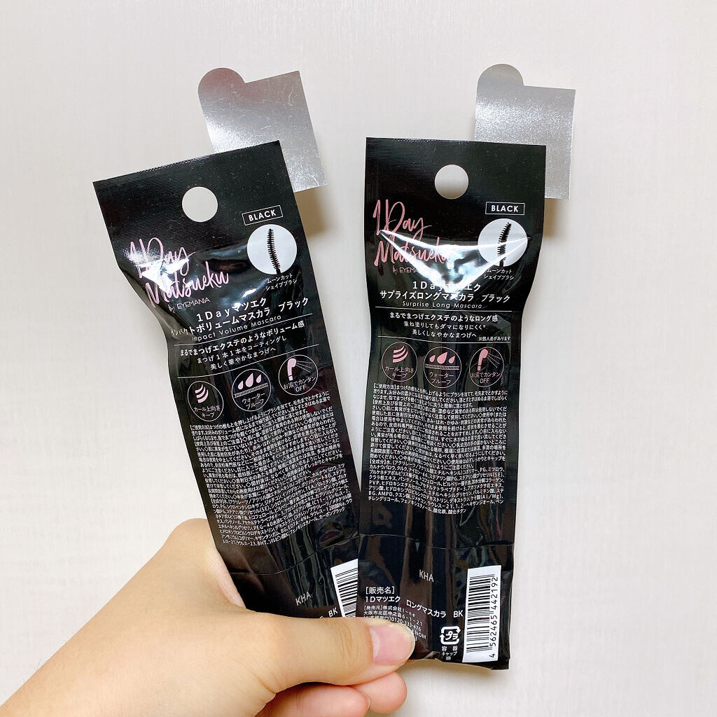 eyemekkoブラック→「アイメッコインパクトボリューム&カールマスカラ」は、コームとブラシを使い分けることでカール・ロング・束感・ボリュームの4タイプのまつ毛を演出できる4in1マスカラ。今回は、欲望ブラックを使いました。→ 短いまつ毛も...