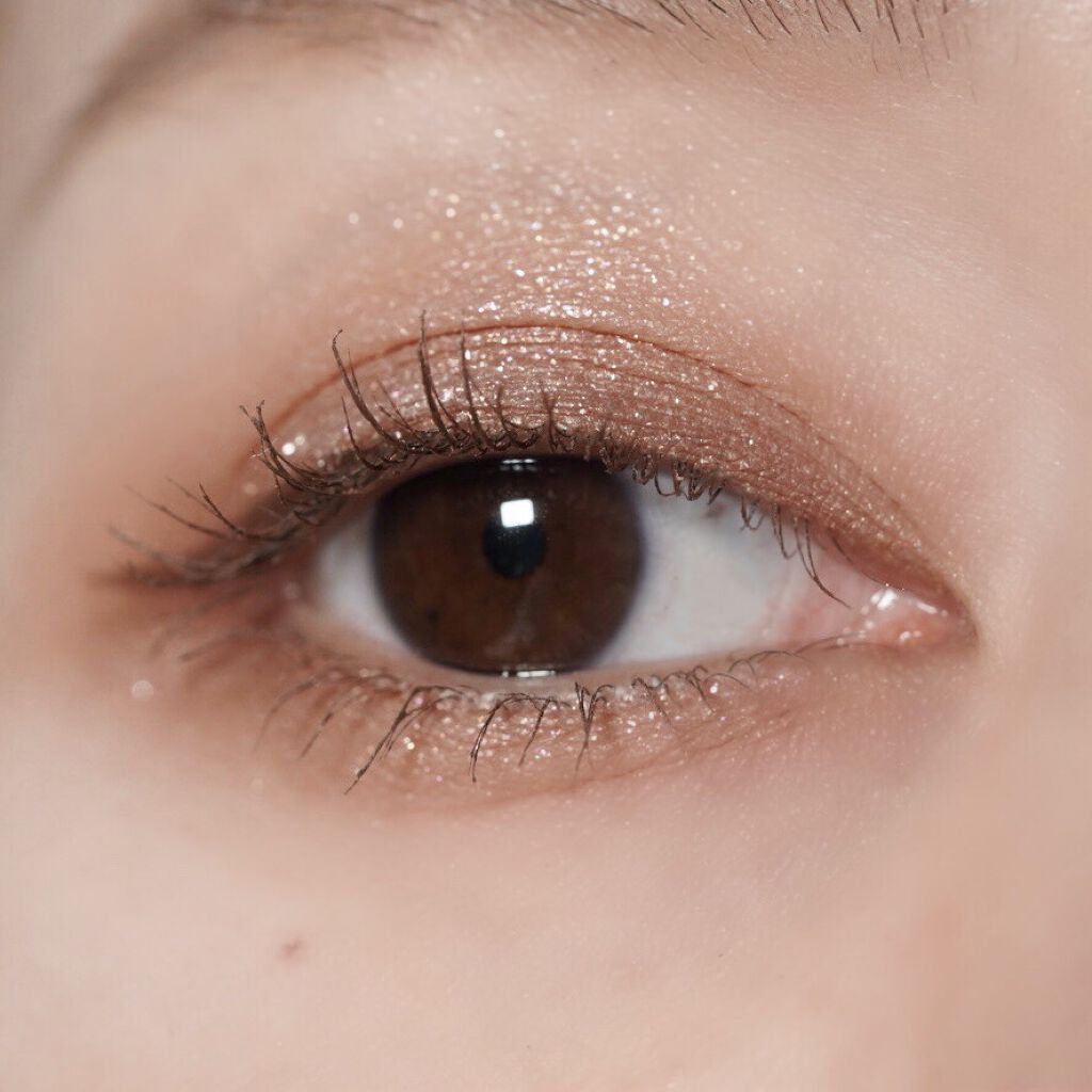 よくパレットのなかで明るいカラーをベースにまぶたに広く塗ることが多いのですが、パール感のあるカラーを避ける🙆♀️! パール感たっぷりの明るいカラーは涙袋に使うぐらい光を集めてぷっくり見せてくれるので、まぶたに広く使うと腫れぼったく見えがち😓 目元を明るくみせてくれたり、次に使うアイシャドウをぼかしやすくしてくれるけど、すっ飛ばしてメインのカラーを塗っちゃう✊🏻❤️🔥 涙袋にはたっぷり塗ってぷっくり見せる🙆♀️💕 シルキースフレアイズのマットタイプはすごく優れているな〜と感じました☺️💗 赤やオレンジなどは、入れすぎると腫れぼったく見えやすいので、見せたいカラーは下まぶた目尻にのせて色をたのしむ♡♡ パール感なしの透けマットだけじゃ物足りない… そう感じさせない華やかなラメが左上に入っているので黒目上と涙袋にのせるとすごく可愛い仕上がりに😍! 厄介な左右差のお陰でマットアイシャドウが好きになりました😌💕