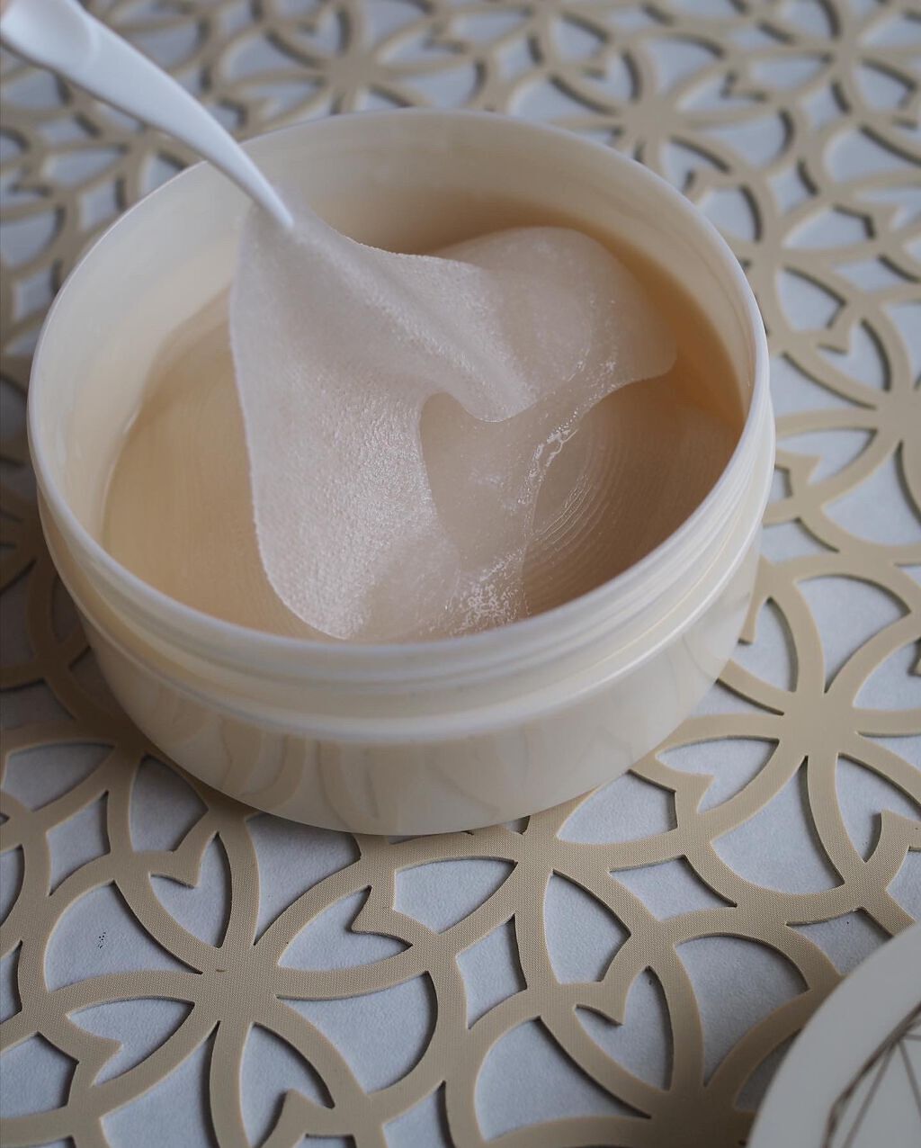 ピンと引き締め、発光するような ハリつや肌へ 大人の複数の肌悩み(シワやシミ・乾燥・ 肌荒れやハリ不足)をマルチケアして くれるんだって♪ ツノが立つほどこっくり系クリームが お肌にぴたーっと密着してくれる。 べたつかず濃厚なしっとり感。 お肌も段々と元気になっていくのが 分かる♪ ジャータイプ(スパチュラ付)も 高級感があってリッチな気持ちになる。 1回の使用料の目安はパール1個分 肌を引き上げるように馴染ませるのが いいみたい。朝も使えるみたい。 ナイアシンアミド(シワ改善・美白有効成分)も含まれているので これからが楽しみ!