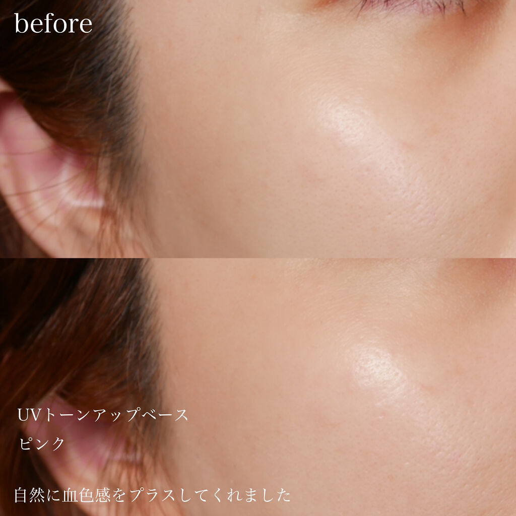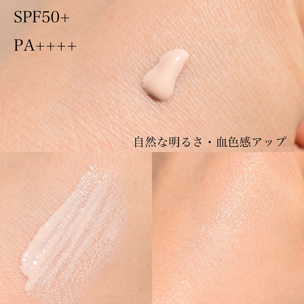 - ※2025年8月以降順次パッケージリニューアル。尚、これにかかる商品の返品交換は承っておりません。 ノンケミカル※なのに紫外線強力カット!健康的なツヤ肌に仕上げるトーンアップ下地。 SPF50+/PA++++の高UVカット×うれしいノンケミカル処方※。 ※紫外線吸収剤不使用 トーンアップパウダーが光を均一に反射し、5種の保湿成分配合でみずみずしく健康的なツヤ肌に仕上がります。 ソフトフォーカス効果パウダー配合で、毛穴を自然にぼかして目立ちにくくします。 白をベースにしているので、マスクメイクにもおすすめ。首やデコルテにも。 軽い使用感なので、デイリー使いにおすすめです。 水・汗・皮脂に強いウォータープルーフ処方。 洗顔料で簡単メイクオフ※単品使用時