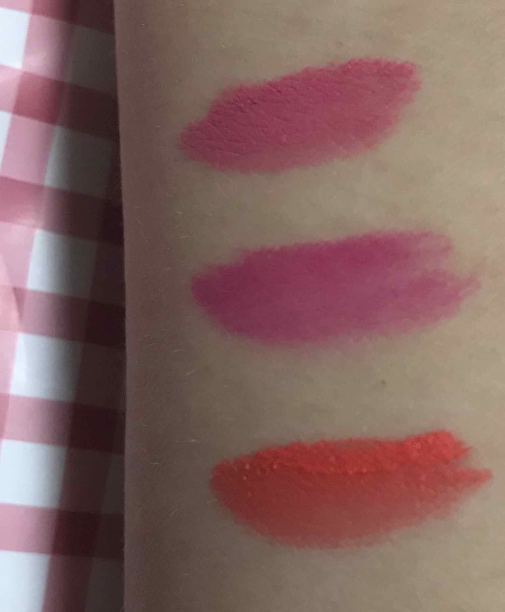ダイソー𓃰⋆⋆エスポルールリップティントです色は5色展開していてスウィートオレンジローズジューシーレッドスウィートピンクアプリコットピンクです(私はジューシーレッドとスウィートオレンジとローズの3色を買いました)1枚目の写真☞加工あり2枚目の...