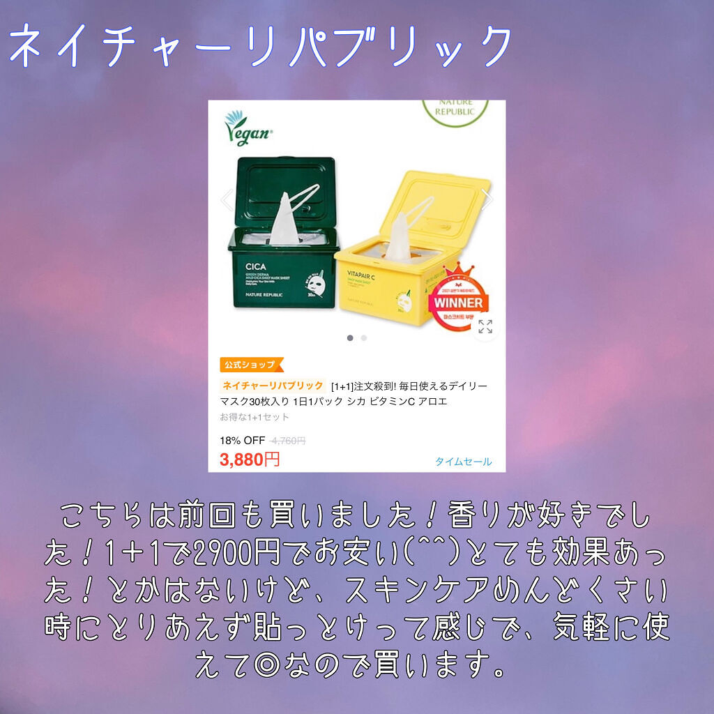 ネイチャーリパブリック ビタペアCデイリーシートマスク | 2,380円 |