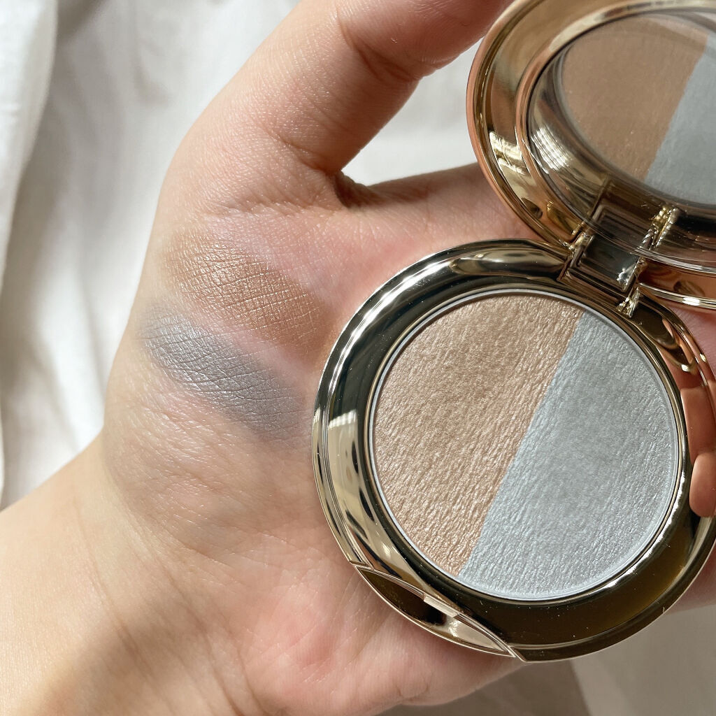- シルキータッチで肌に溶け込み ニュアンスをまとうバイカラーシャドウ。 手のひらにおさまるエレガントなミラーつきコンパクトに、フォギーなパステルを含む2色をセットしたアイカラー。 ポイント使 いでくすみを含んだそれぞれのパステルカラーを主張させたり、2色をミックスしてナチュラルながら印象に残る表情に。 パウダーをオイルコーティングし、植物由来のアミノ酸パウダー*1を高配合した処方により、しっとりシルキーな感触ですっと肌に溶け込むようにフィット。 高発色とぼかしやすさを両立しているのも特長です。皮脂吸収パウダー配合により汗や皮脂にも色がくすみにくく、色持ちを叶えます。 *1 ラウロイルリシン(保湿成分)