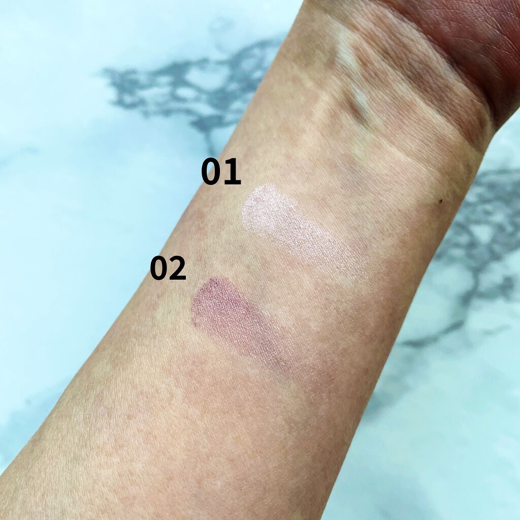 粉質もラメも細かくて良い感じ! ツヤ感ってより目元がパッと明るくなる感じのハイライトです。 塗ると一気にラメでツヤ感でる! 粉質しっとりしててラメってよりパール感がすごくて一気にツヤ肌なれる! この中では1番ラメ感強め! 程よいラメ感でツヤ感もあり!透明感出る! これ本当に値段で悩んだんだけどすごい上品な艶感出るやつだった! これはもう艶感一択! あとこれだけ粉じゃなくてクリーム系。そしてラメじゃなくてパール。 指にとってトントンするといい感じにツヤ感でる!