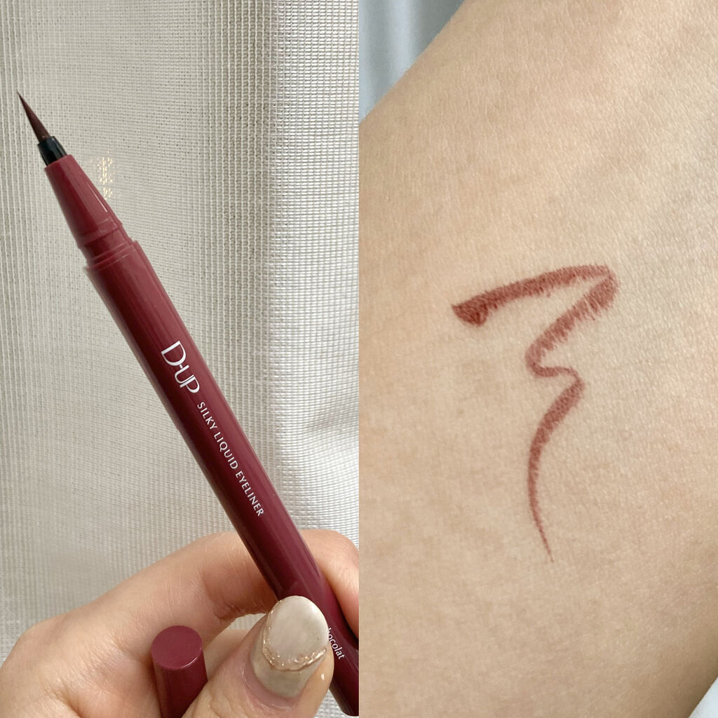 口コミが良かったから購入してみました! 極細0.1mmの筆先でしっかりしていてかきやすい!! 速乾だからにじまないし、擦っても消えない!すごすぎる❤️❤️❤️ 水、汗、皮脂に強いウォータープルーフで一日中落ちなかった🥹❤️ ダークフィグは大人っぽい濃いブラウン ピンクショコラは大人っぽいけど可愛いピンク!どちらも使いやすいカラー💎