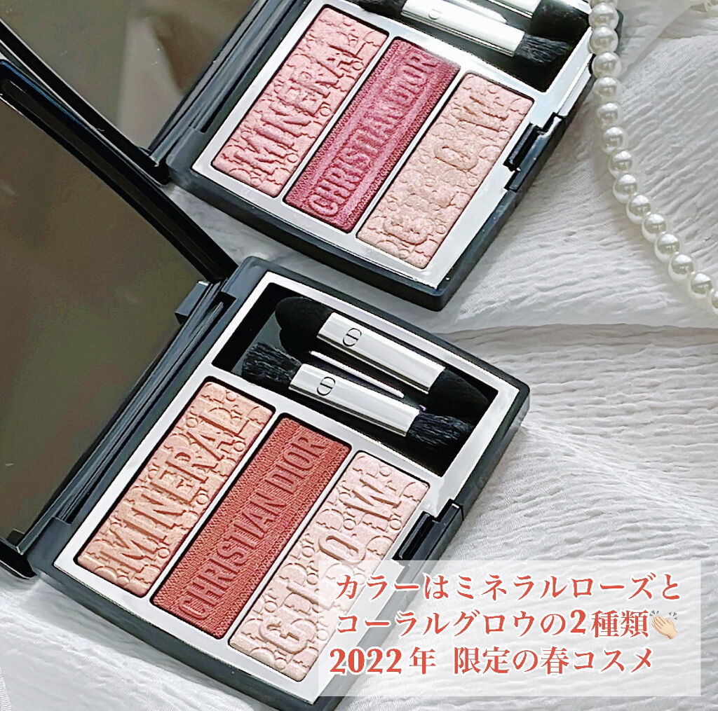 - 春の訪れを祝して、アイコニックなディオール オブリークのモチーフからインスピレーションを得た限定デザインのアイシャドウ パレットが登場。今春のテーマ「MINERAL GLOW」の文字が刻印された3色のアイシャドウは、ピンク系とコーラル系の2つのハーモニーで春の目元を華やかに彩ります。