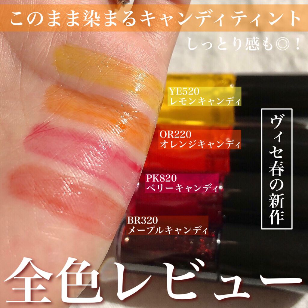 - <OR220 オレンジキャンディ> 水、BG、グリセリン、エタノール、アンズ果汁、ステビア葉/茎エキス、ヒアルロン酸Na、水溶性コラーゲン、イソステアリン酸PEG-50水添ヒマシ油、ヒドロキシプロピルメチルセルロース、ポリソルベート60、リン酸2Na、リン酸Na、結晶セルロース、水酸化Na、サリチル酸、フェノキシエタノール、メチルパラベン、黄4、赤227、橙205 <YE520 レモンキャンディ> 水、BG、グリセリン、エタノール、アンズ果汁、ステビア葉/茎エキス、ヒアルロン酸Na、水溶性コラーゲン、イソステアリン酸PEG-50水添ヒマシ油、ヒドロキシプロピルメチルセルロース、ポリソルベート60、リン酸2Na、リン酸Na、結晶セルロース、水酸化Na、サリチル酸、フェノキシエタノール、メチルパラベン、黄4 <BR320 メープルキャンディ> 水、BG、グリセリン、エタノール、アンズ果汁、ステビア葉/茎エキス、ヒアルロン酸Na、水溶性コラーゲン、イソステアリン酸PEG-50水添ヒマシ油、ヒドロキシプロピルメチルセルロース、ポリソルベート60、リン酸2Na、リン酸Na、結晶セルロース、水酸化Na、サリチル酸、フェノキシエタノール、メチルパラベン、黄4、青1、赤227 <PK820 ベリーキャンディ> 水、BG、グリセリン、エタノール、アンズ果汁、ステビア葉/茎エキス、ヒアルロン酸Na、水溶性コラーゲン、イソステアリン酸PEG-50水添ヒマシ油、ヒドロキシプロピルメチルセルロース、ポリソルベート60、リン酸2Na、リン酸Na、結晶セルロース、水酸化Na、サリチル酸、フェノキシエタノール、メチルパラベン、黄4、赤227