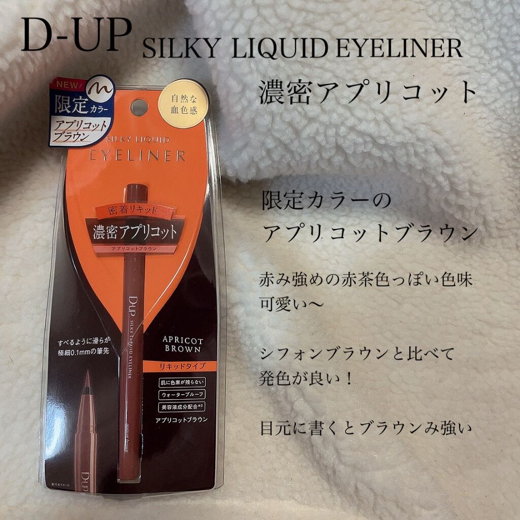 D-UPから絶妙カラーが登場⭐️✅D-UPシルキーリキッドアイライナーチャコールモカ落ち着きのあるグレージュに黒のくっきり感をプラスした深い発色の深みグレージュ🤍黄みも赤みも抑えた万能カラーだから本当に誰でも似合うカラーでグレージュだから使う...