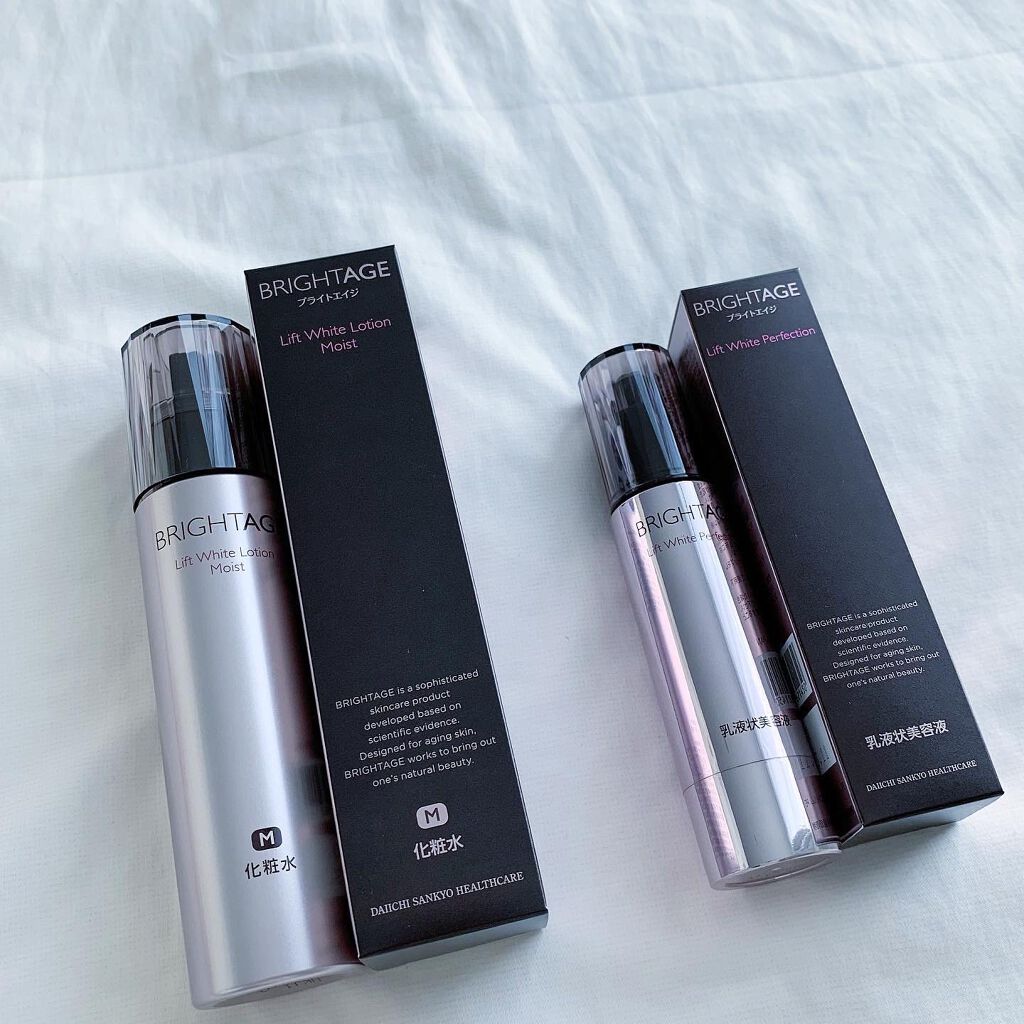 本格エイジングケアシリーズのスキンケア、ブライトエイジ。薬用有効成分である「トラネキサム酸」と「グリチルリチン酸2K」をWで配合。 これは乳液状美容液で、1品で「美容液」と「乳液」の2つの機能があるよ🙆🏻♀️ コクがあってしっかりしたテクスチャーで、化粧水の後これだけで済むし、お気に入りのスキンケアです✨