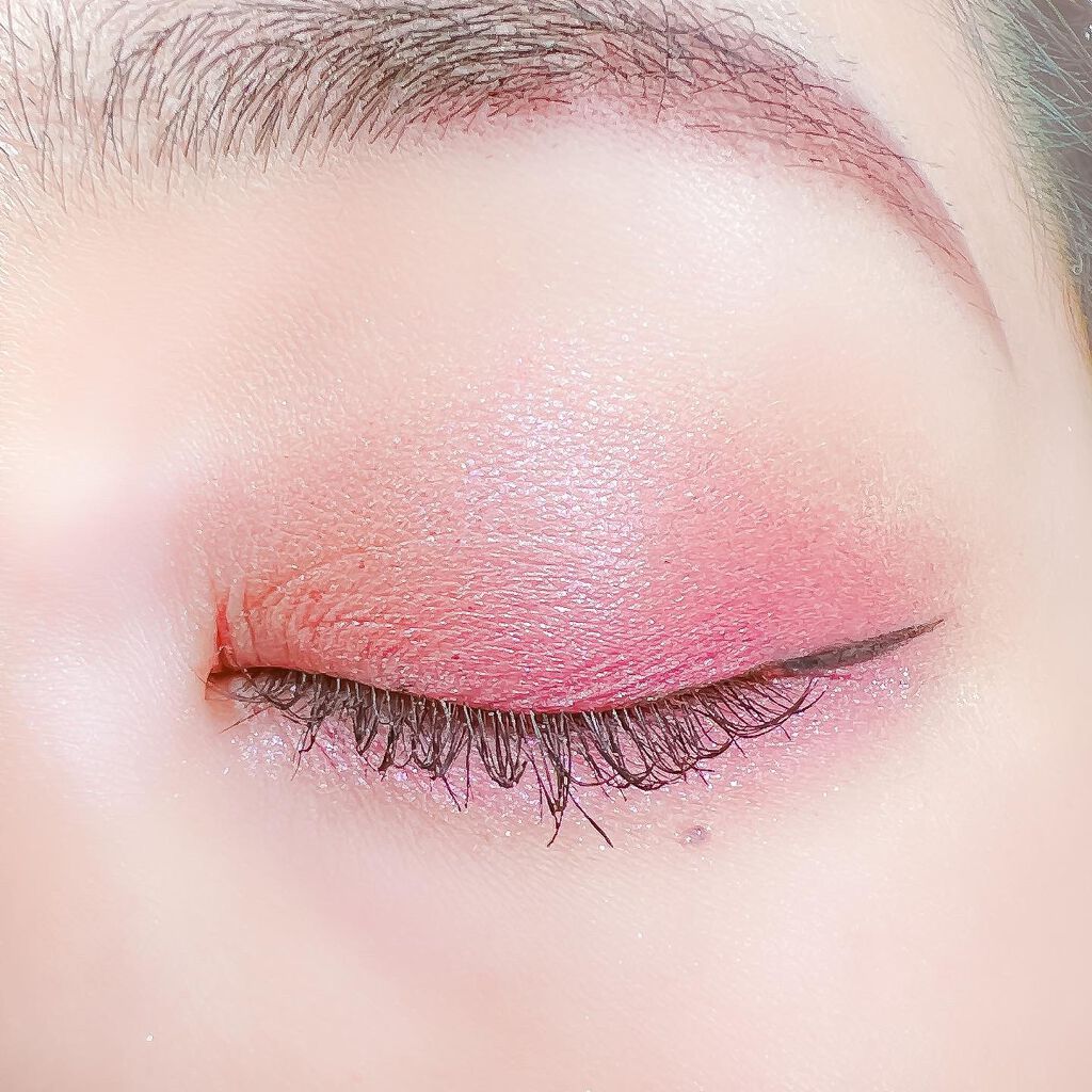 ベースに右上、目頭から黒目上に真ん中、黒目〜目尻に右下を、左上を目頭にくの字に塗ってもらいました✨ ピンクサクラよりもクールな感じで、目で見た色より私の肌では紫っぽく発色しました😍 上2つはラメはぎっしりでときめく💓 ブラウンメイクがとても苦手だけれどこれならブラウンメイク出来そう👌(かなり紫寄りですが) くすみ感は強いので苦手な方は厳しいかも…(特に真ん中) クールな印象になるので大人顔さん向けor大人顔になりたい方向けのイメージです✨