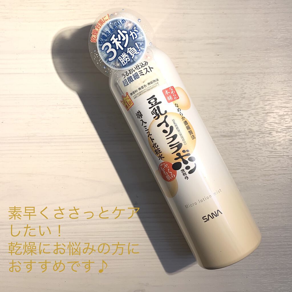 - 2023年2月7日リニューアル 1.高純度豆乳イソフラボン※1×豆乳発酵液※1×ヒト型セラミド※2配合 九州産丸大豆「ふくゆたか」から作られた高純度豆乳イソフラボン※1と豆乳発酵液※1を贅沢に配合。 さらにヒト型セラミド※2配合でお肌にうるおいを与えます。 2.超微細ミストでうるおいケア! 毛穴より細かく、肌あたりの良いマイクロミストが角層まで浸透※3し、うるおいのあるお肌に導きます。 大豆由来の浸透※3成分※4がお肌に必要な油分と水分の両方を引き付けながら浸透※3! 化粧水やオールインワンジェルの前の使用がおすすめです。 3.全身にもより使いやすく! 倒立(逆さ)での使用も可能。背中など、全身にもお使いいただきやすくなりました。 4.無香料・無着色・無鉱物油 5.各種試験を実施 ・アレルギーテスト済み ・パッチテスト済み (すべての方にアレルギー等が起きないというわけではありません) ※1 保湿成分 ※2 セラミドNG(保湿成分) ※3 角層まで ※4 水酸化レシチン(保湿成分)