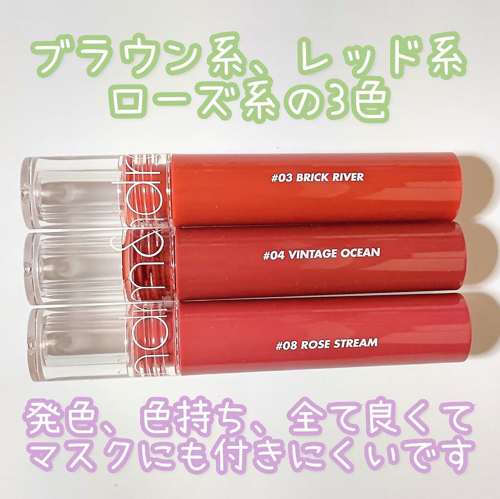 | 潤いが長続きします! 透け色ですが、重ねればパキッと仕上がるので調整しやすいティントだと思います!! | 詳細を見る |