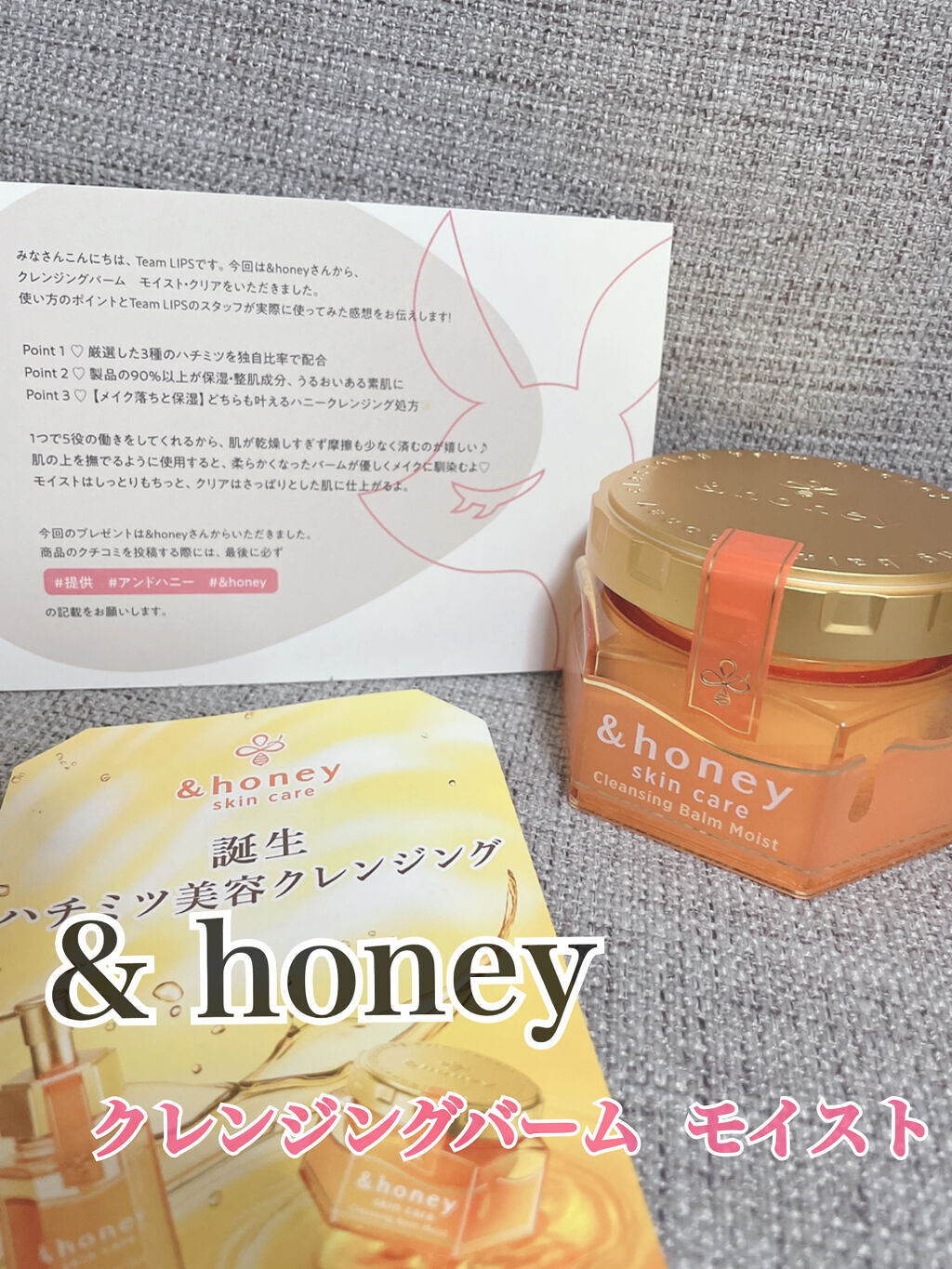 - 『&honey』から初のスキンケアシリーズ、クレンジングが誕生。 肌にうるおいを与えながら落とすハチミツ美容で、製品の90%以上をハチミツやアルガンオイル、オーガニックヒアルロン酸などの保湿&整肌成分で構成。 【クレンジングバーム モイスト】 ・ハニーモイスト成分*を配合 潤いを残しながらメイクをOFF.しっとり肌へ導きます。 ・1つで5役 メイク落とし・角質ケア・洗顔・マッサージ・保湿の5役 ・W洗顔不要。まつエクOK。パッチテスト済み。 ・無添加・フリー処方 合成着色料・パラベン・アルコール・動物実験フリー ・スイートハニーの香り *プロポリスエキス、ハチミツ(全て保湿)