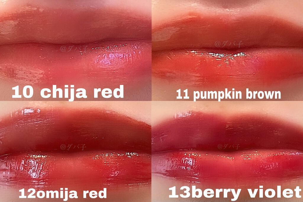今回のrom&ndが全色ヌード系で 色が濃くて使うのが少し難しいなぁ〜 ナチュラルな色味のティントが欲しいな〜 日常使いにも抜群ですので、ぜひぜひ〜 色持ちが良い ベタつかない うるおいも長時間持つ ティント力がすごい 22番 POMELO SKIN 少し黄味の入ったヌードベージュ 発色が強すぎないのでデイリー使い 23番 NUCADAMIA ヌードなレッドブラウン 色気があるけどヘルシーなおしゃれな色味 24番 PEELING ANGDOO 青み寄りのヌードピンクレッド 25番 BARE GRAPE くすみローズなヌードピンク 品のある大人カラー 黄味ピンクでどんなメイクにも馴染んでしまう パッケージも既存の物よりどれがどの色かより把握しやすく パッケージもすごく可愛いのでおすすめです