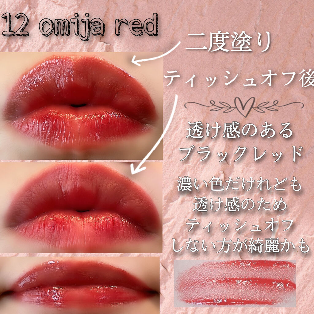 | 口紅・グロス・リップライナーランキング第92位 | 潤いが長続きします! 透け色ですが、重ねればパキッと仕上がるので調整しやすいティントだと思います!! | 詳細を見る |
