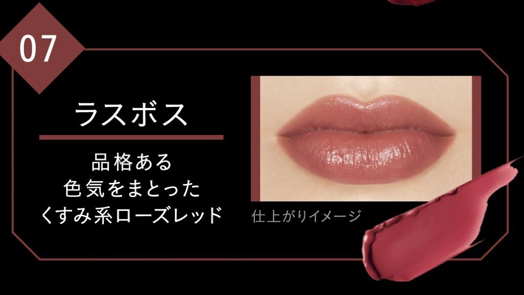 | 口紅・グロス・リップライナーランキング第7位 | 全色どこかまろやかさを感じる発色で デイリー使いしやすい粘膜の延長のようなカラー | 詳細を見る | |