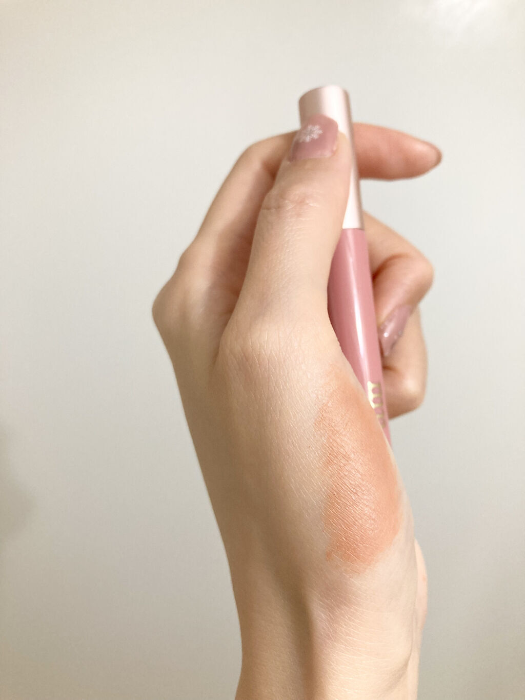 このチークは「激安!ポンポン買える!」という値段ではなく、これまではセザンヌの400円のチークや100均のものばかり買っていました。笑 まず淡めのカラーなので、つけすぎてド派手になるということがなく適当に塗るだけでいい感じに!笑 色味も肌馴染み抜群です! 特にイエベさん向きかと思いますが、ブルベさんにも合うと思います。 スウォッチですが、私の肌色だと馴染みすぎて分かりにくいので多めにつけてます!