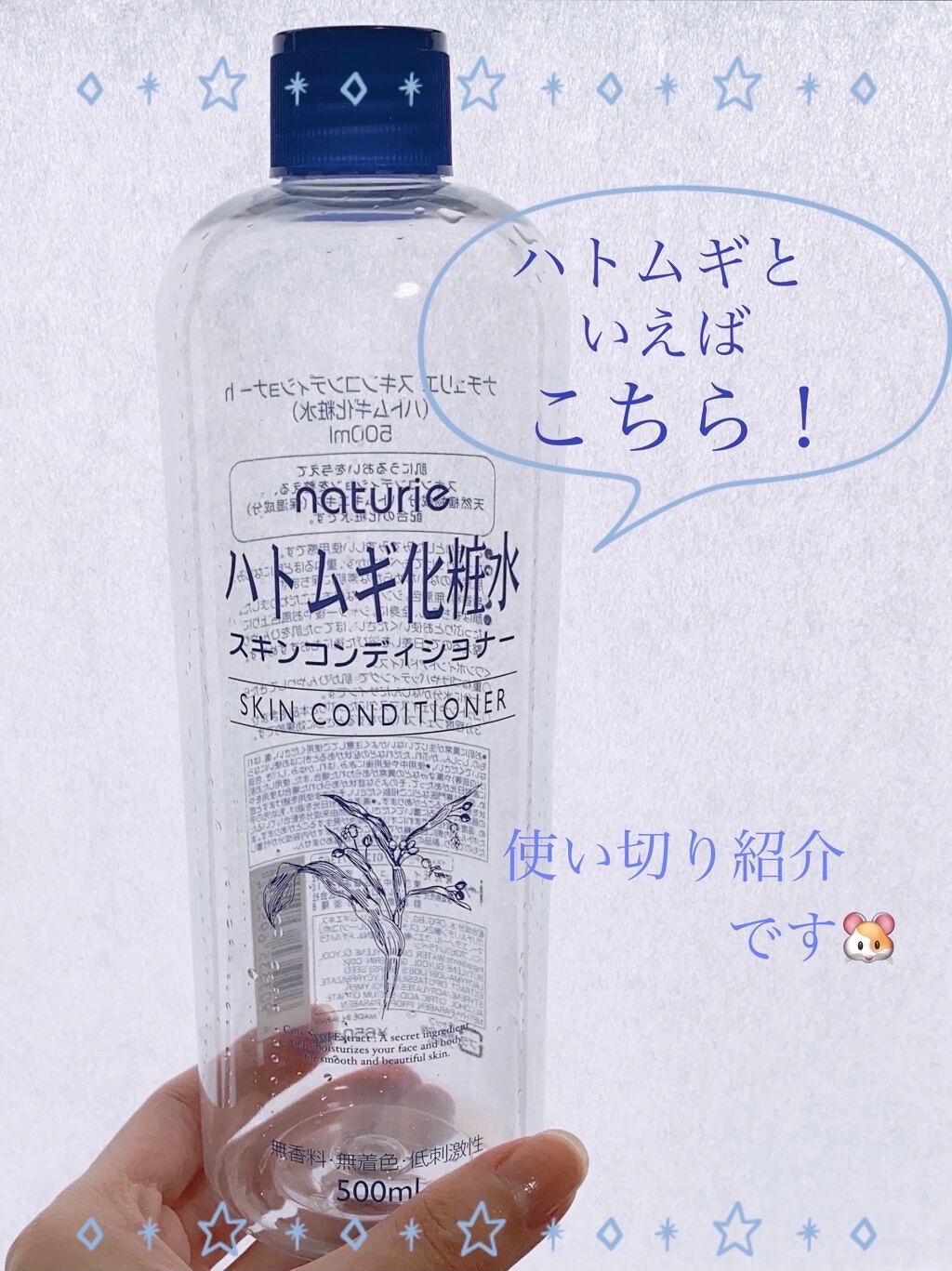 - <通常サイズ 500ml> 水、DPG、BG、グリセリン、ハトムギエキス、グリチルリチン酸2K、(スチレン/VP)コポリマー、クエン酸、クエン酸Na、メチルパラベン <500ml+ 限定ムーミンデザインボトル> 水、DPG、BG、グリセリン、ハトムギエキス、グリチルリチン酸2K、(スチレン/VP)コポリマー、クエン酸、クエン酸Na、メチルパラベン <詰め替えタイプ 480ml> 水、DPG、BG、グリセリン、ハトムギエキス、グリチルリチン酸2K、(スチレン/VP)コポリマー、クエン酸、クエン酸Na、メチルパラベン <旧製品> BG、グリセリン、メチルパラベン、エタノール、グリチルリチン酸2K、ハトムギエキス、DPG、クエン酸Na、プロピルパラベン、クエン酸、(スチレン/アクリレーツ)コポリマー、水 <限定ムーミンデザイン> 水、DPG、BG、グリセリン、ハトムギエキス、グリチルリチン酸2K、(スチレン/VP)コポリマー、クエン酸、クエン酸Na、メチルパラベン