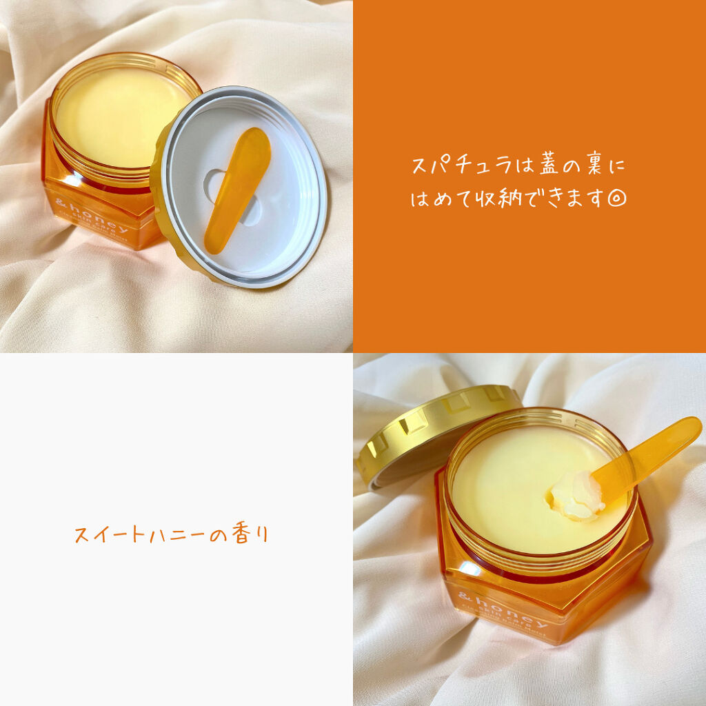 - 『&honey』から初のスキンケアシリーズ、クレンジングが誕生。 肌にうるおいを与えながら落とすハチミツ美容で、製品の90%以上をハチミツやアルガンオイル、オーガニックヒアルロン酸などの保湿&整肌成分で構成。 【クレンジングバーム モイスト】 ・ハニーモイスト成分*を配合 潤いを残しながらメイクをOFF.しっとり肌へ導きます。 ・1つで5役 メイク落とし・角質ケア・洗顔・マッサージ・保湿の5役 ・W洗顔不要。まつエクOK。パッチテスト済み。 ・無添加・フリー処方 合成着色料・パラベン・アルコール・動物実験フリー ・スイートハニーの香り *プロポリスエキス、ハチミツ(全て保湿)